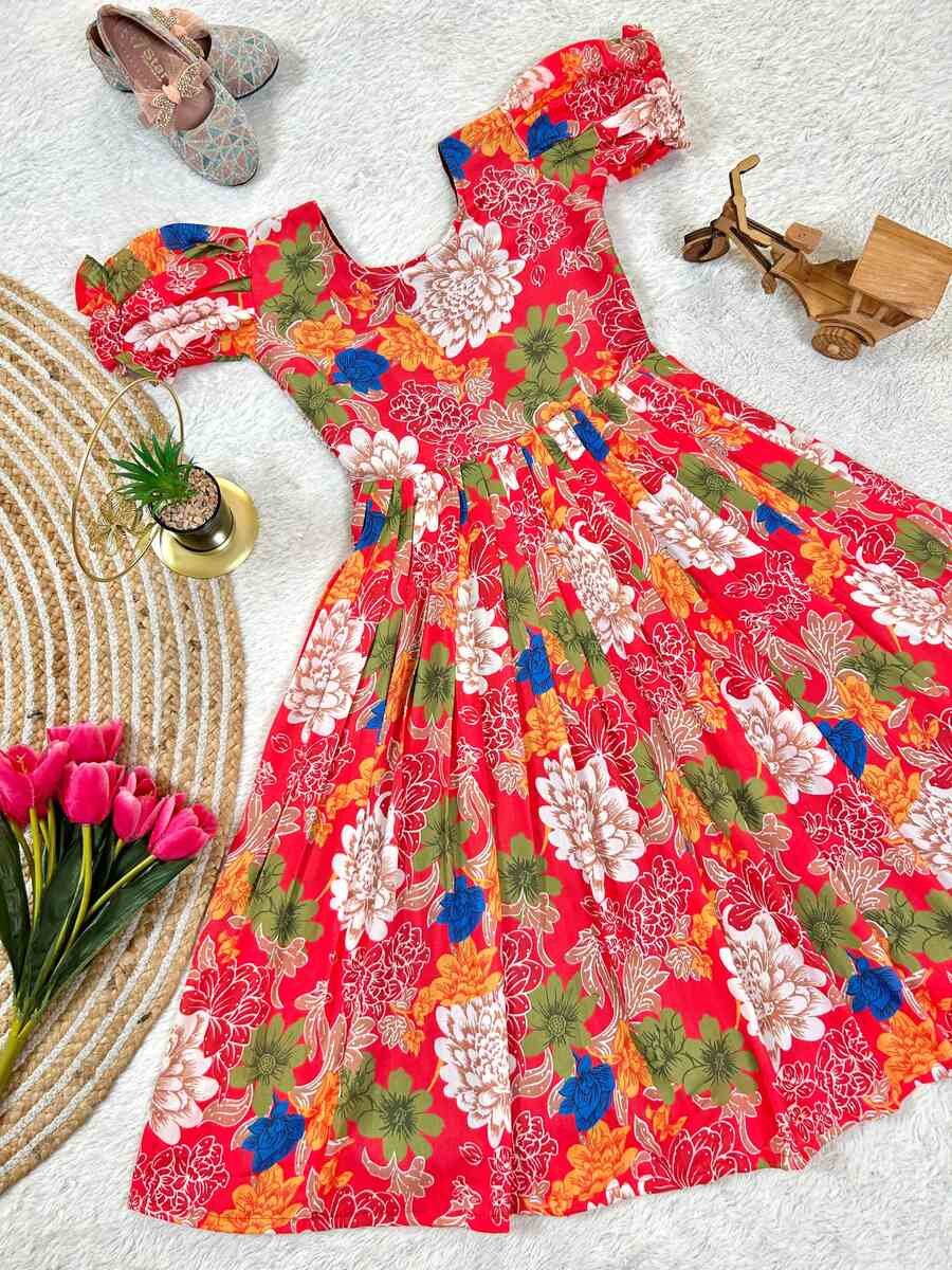 LATEST COTTON DIGITAL FLORAL PRINT KID’S GOWN RED
