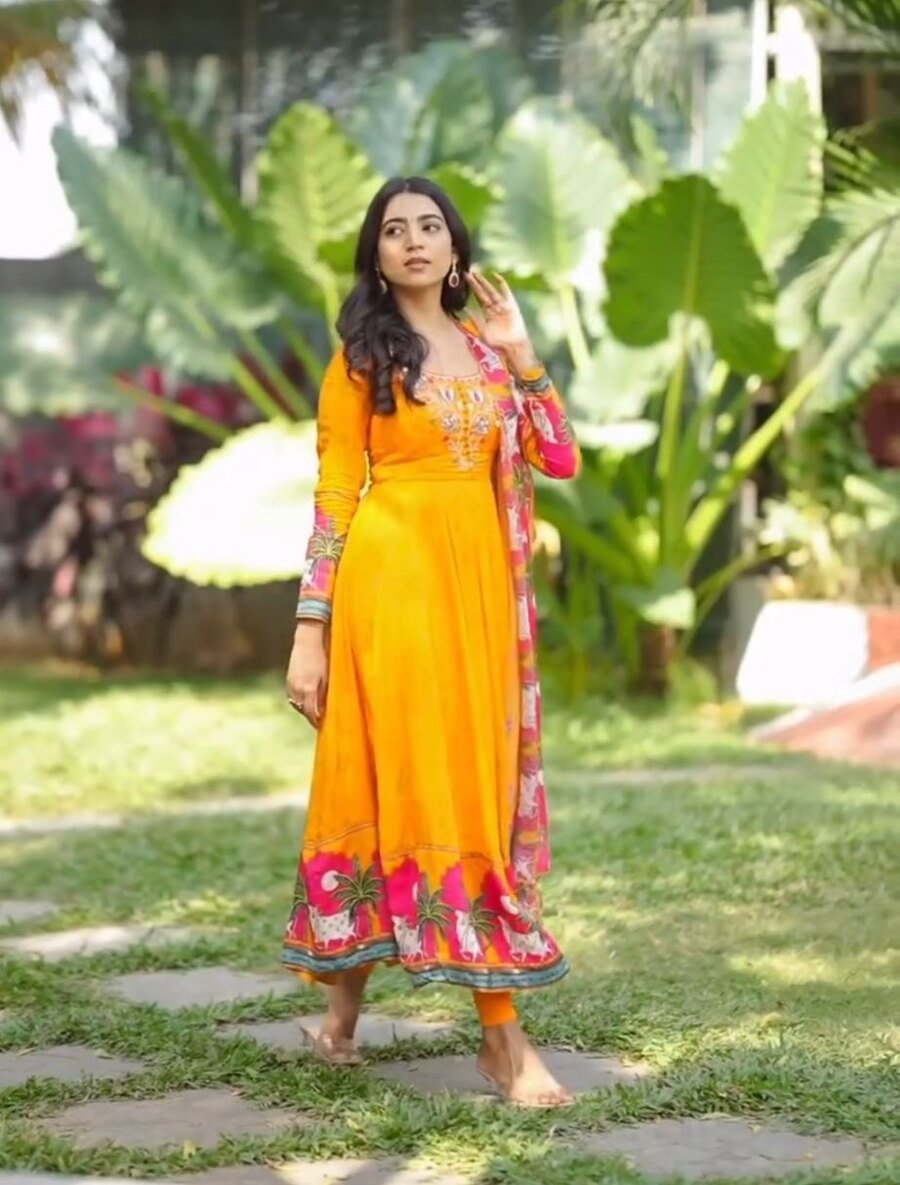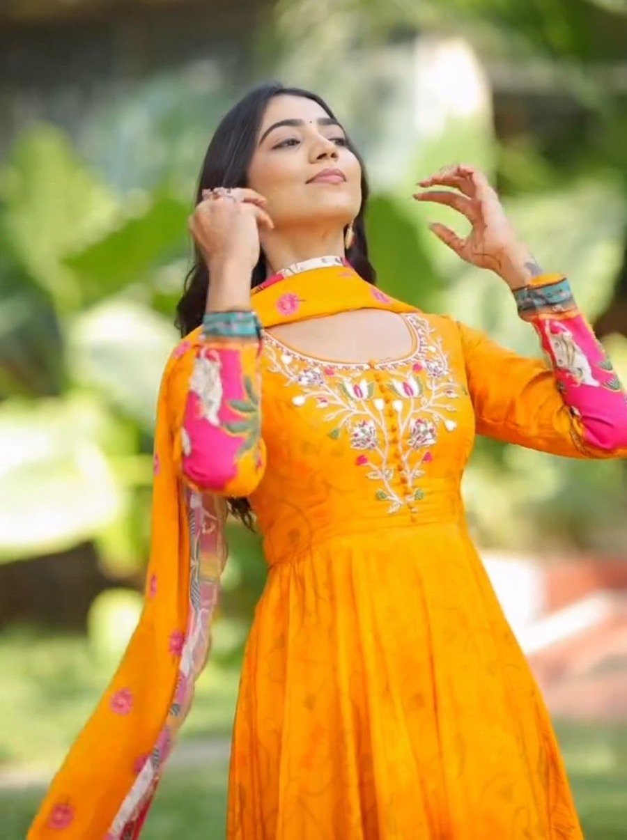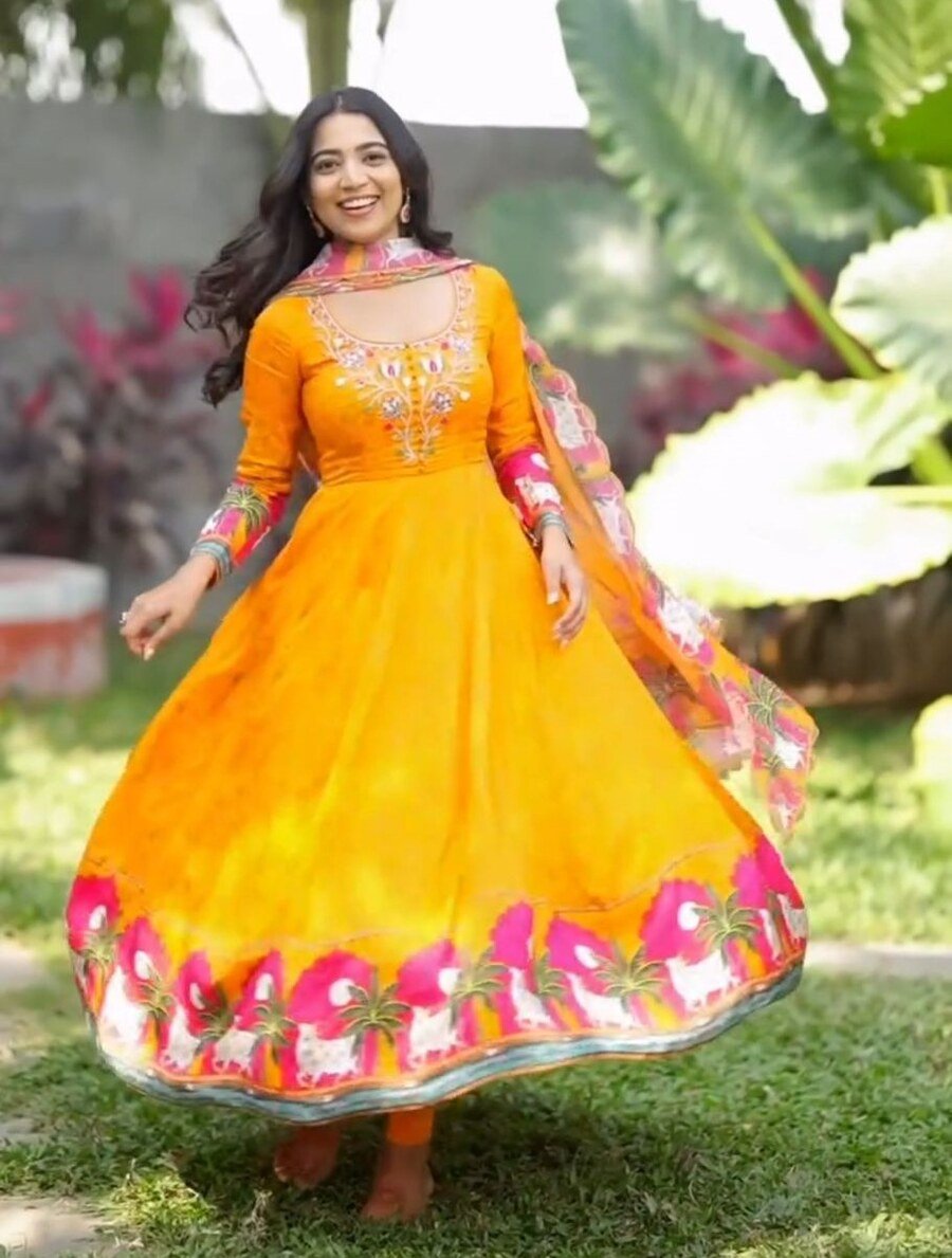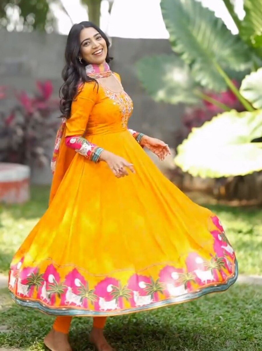 LATEST COTTON KALAMKARI PRINT WITH EMBROIDERY WORK GOWN WITH DUPATTA YELLOW