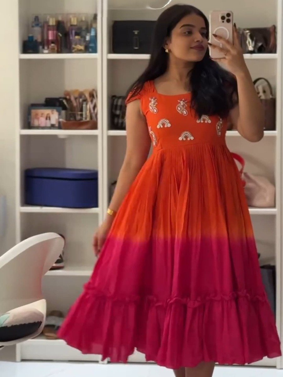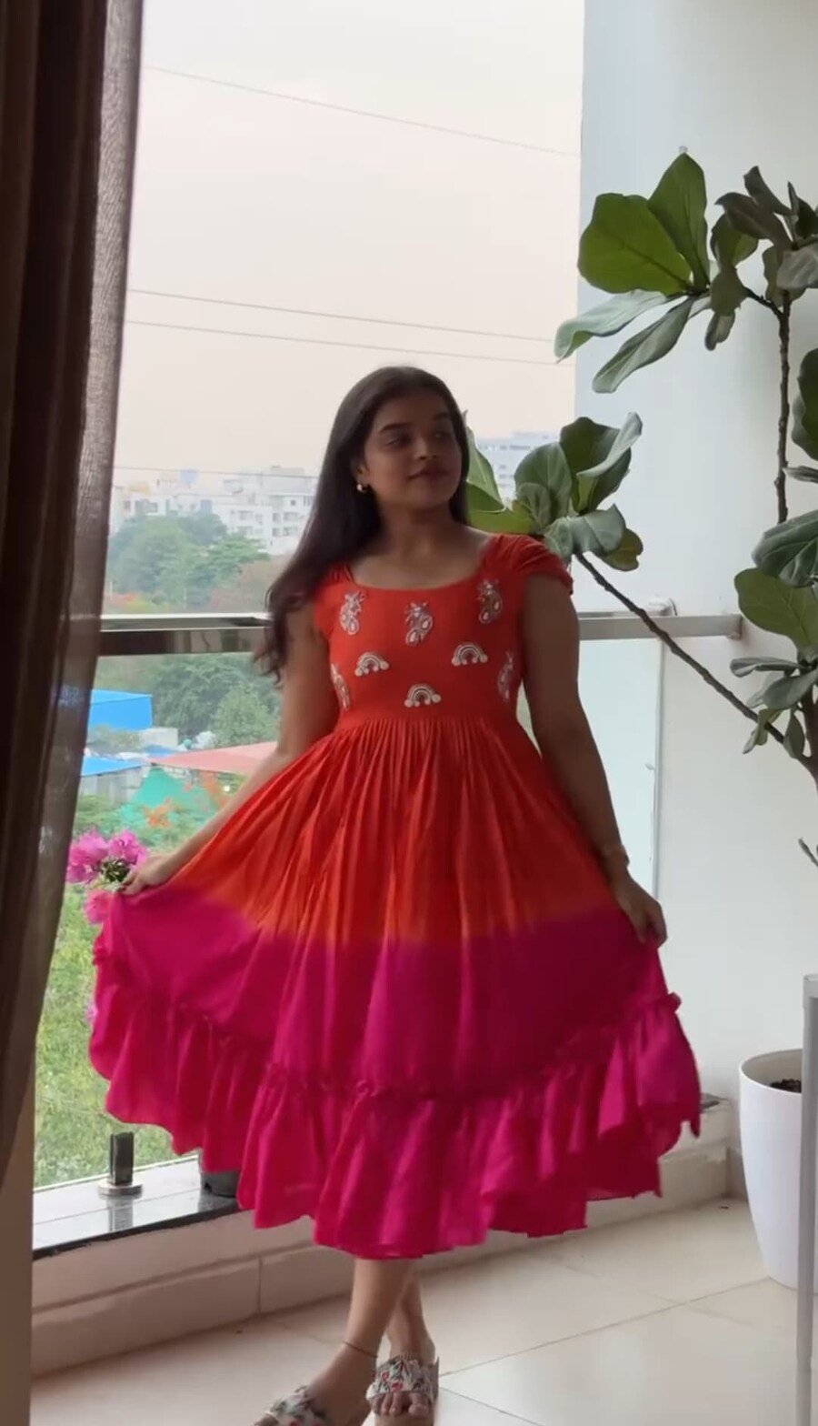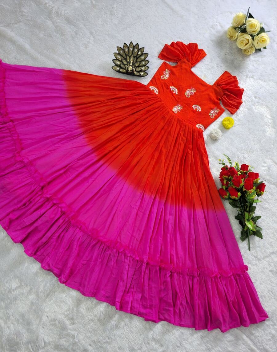 LATEST COTTON PADDING MULTI COLOR HANDWORK ONE PIECE ORANGE