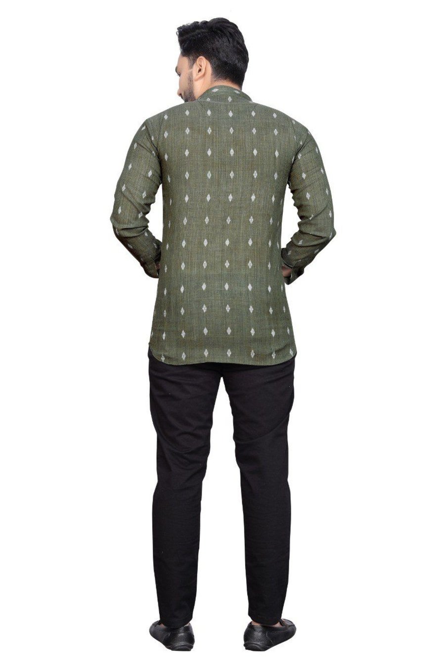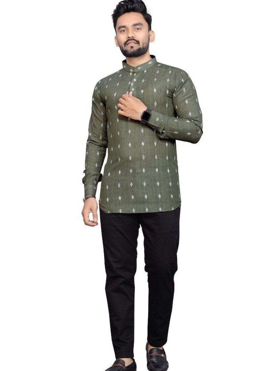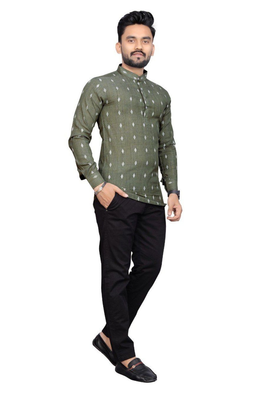 LATEST COTTON SLUB PRINTED MEN’S SHORT KURTA GREY