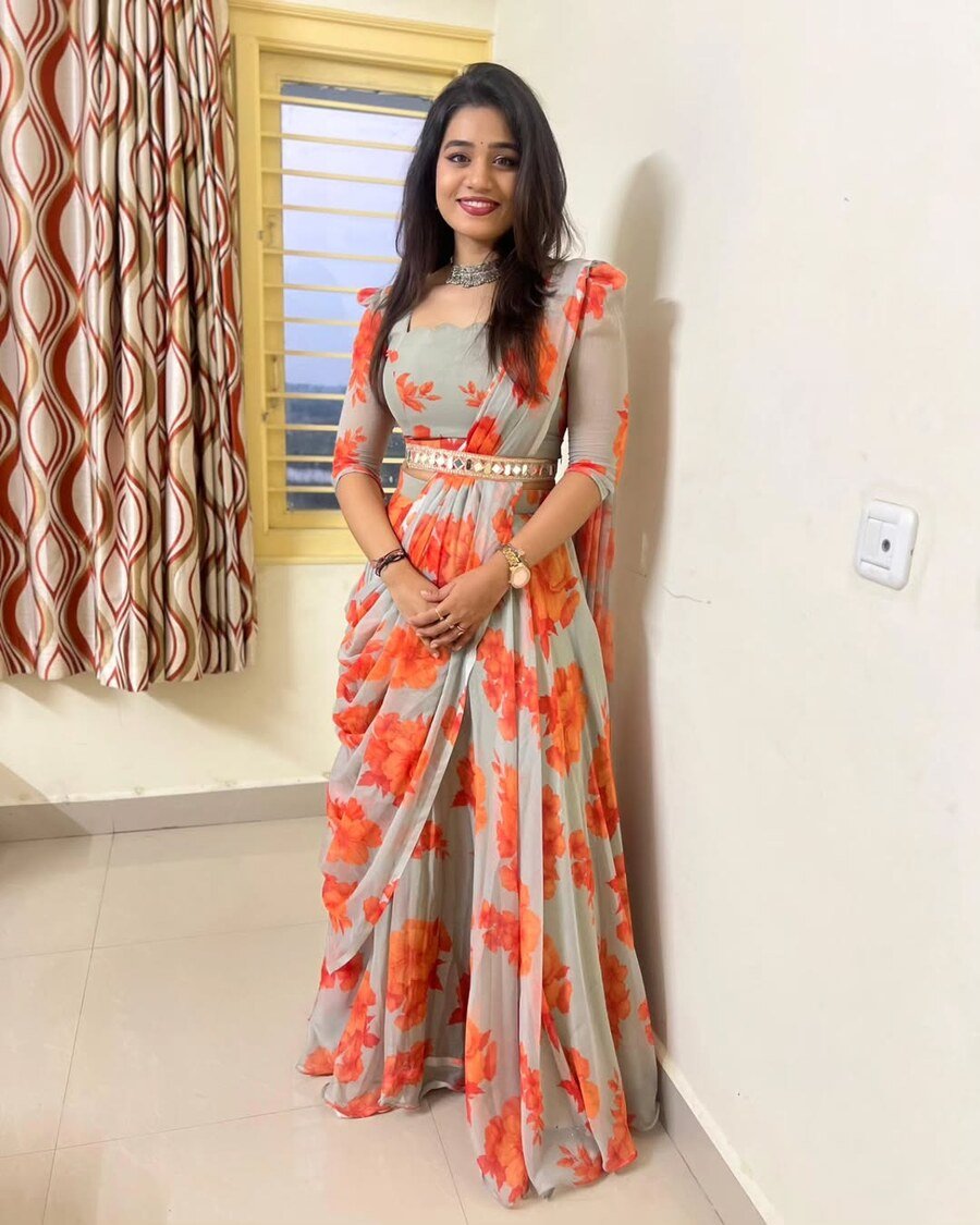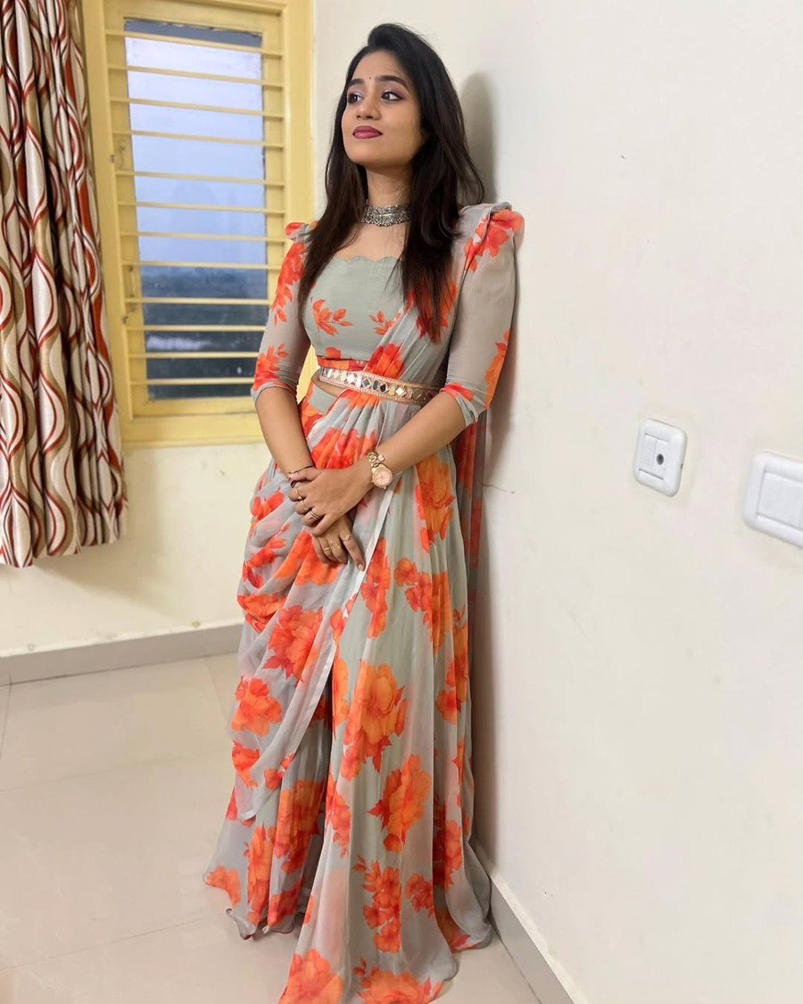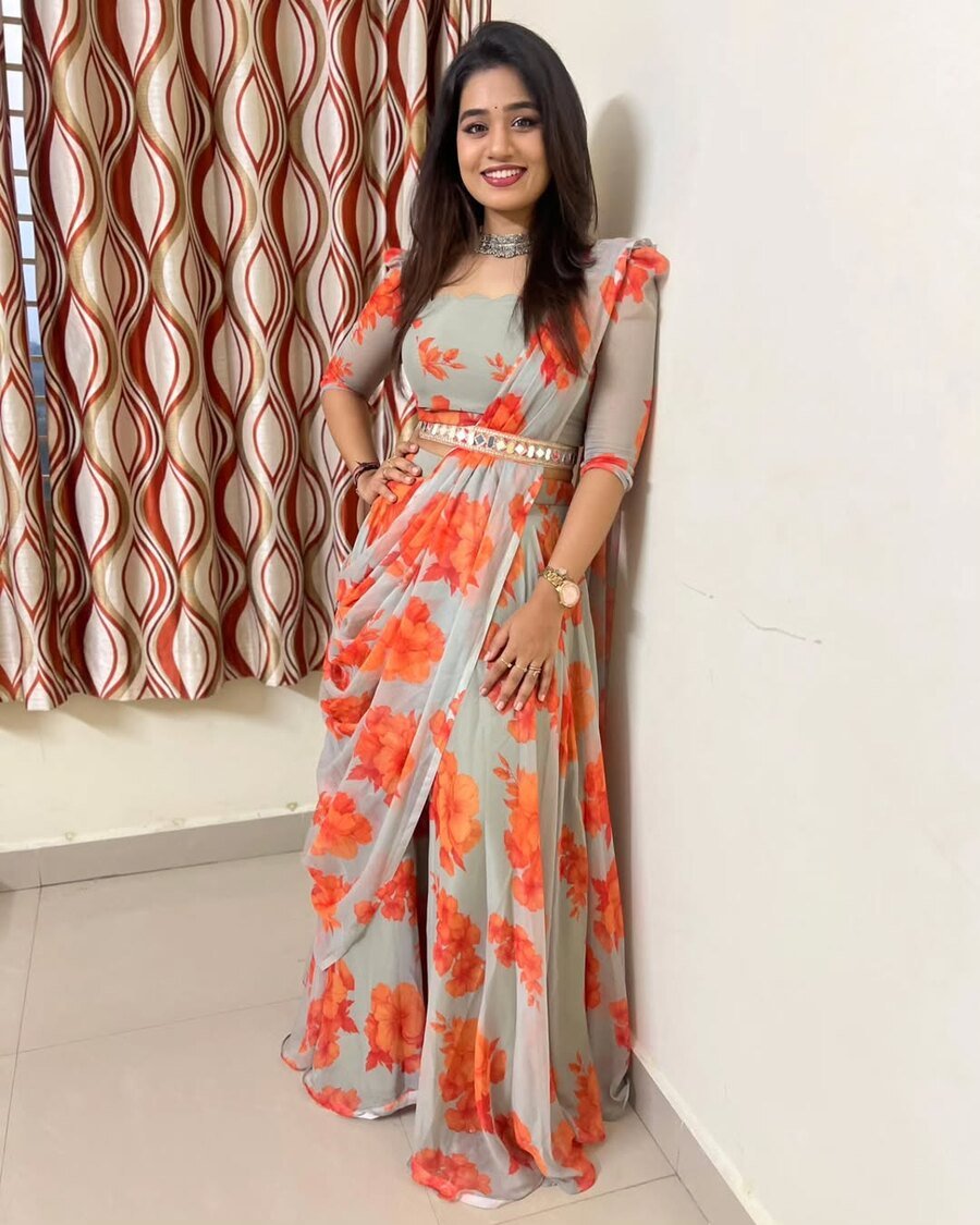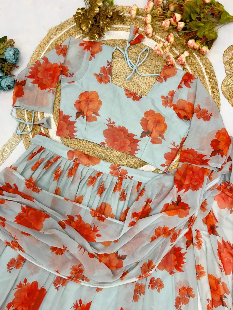FABRIC : HEAVY FAUX GEORGETTE RUFFLE AND DIGITAL PRINT