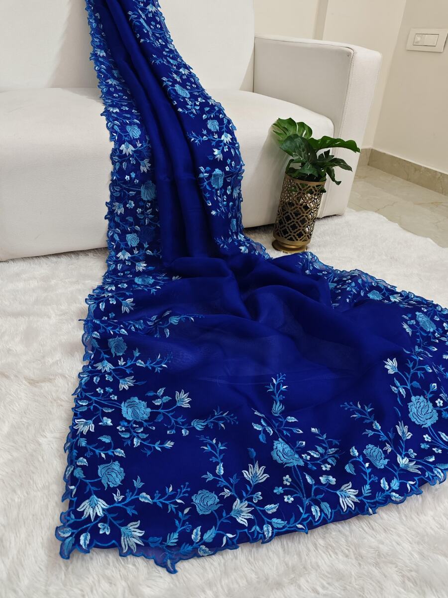 SAREE WORK : EMBROIDERY WORK BUTTA COMES WITH SCALLOPED BORDER