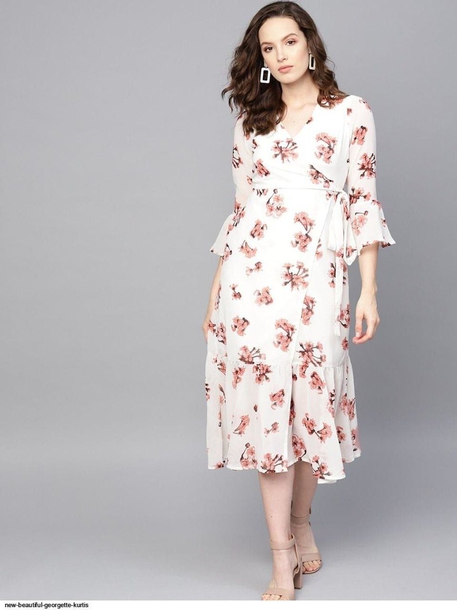 LATEST GEORGETTE FLORAL PRINTED ONE PIECE WHITE