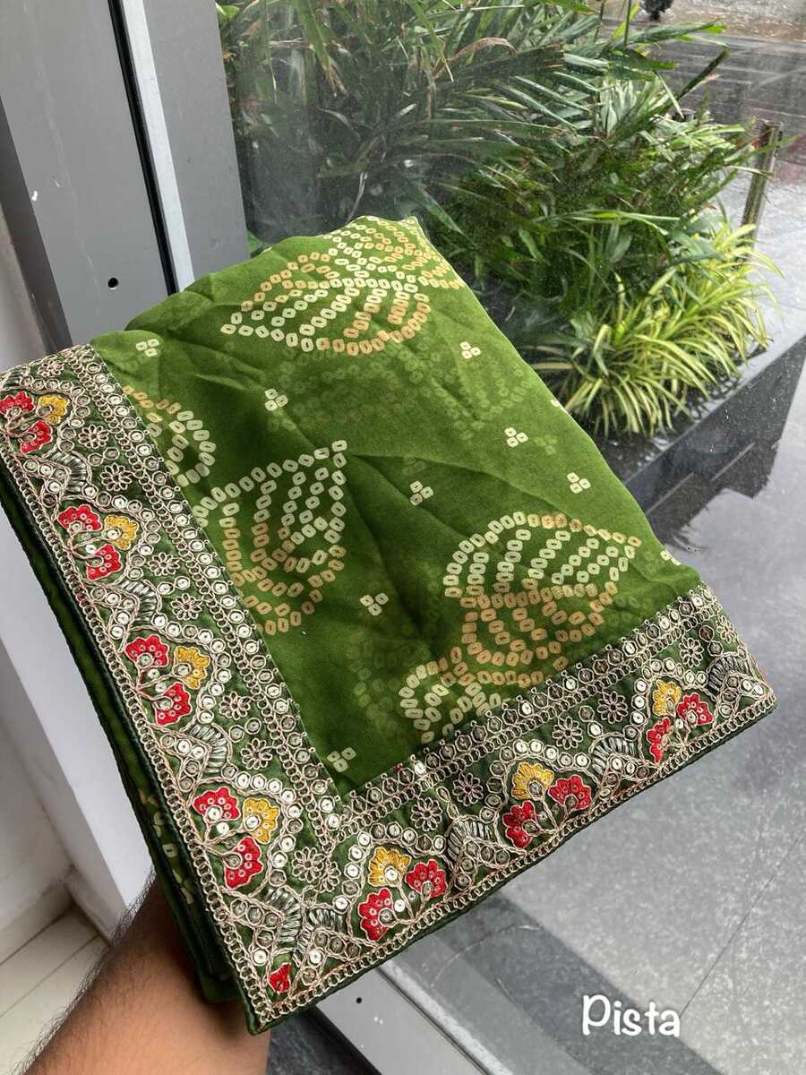 WORK : RAJWADI BANDHEJ PRINT WITH HEAVY EMBROIDERY WORK LACE BORDER