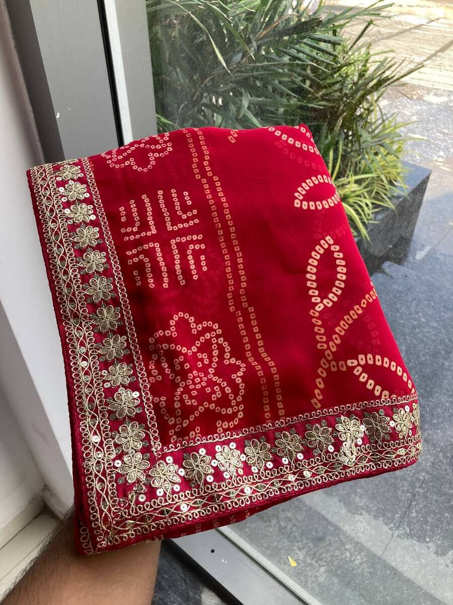 WORK : RAJWADI BANDHEJ PRINT WITH HEAVY EMBROIDERY WORK LACE BORDER