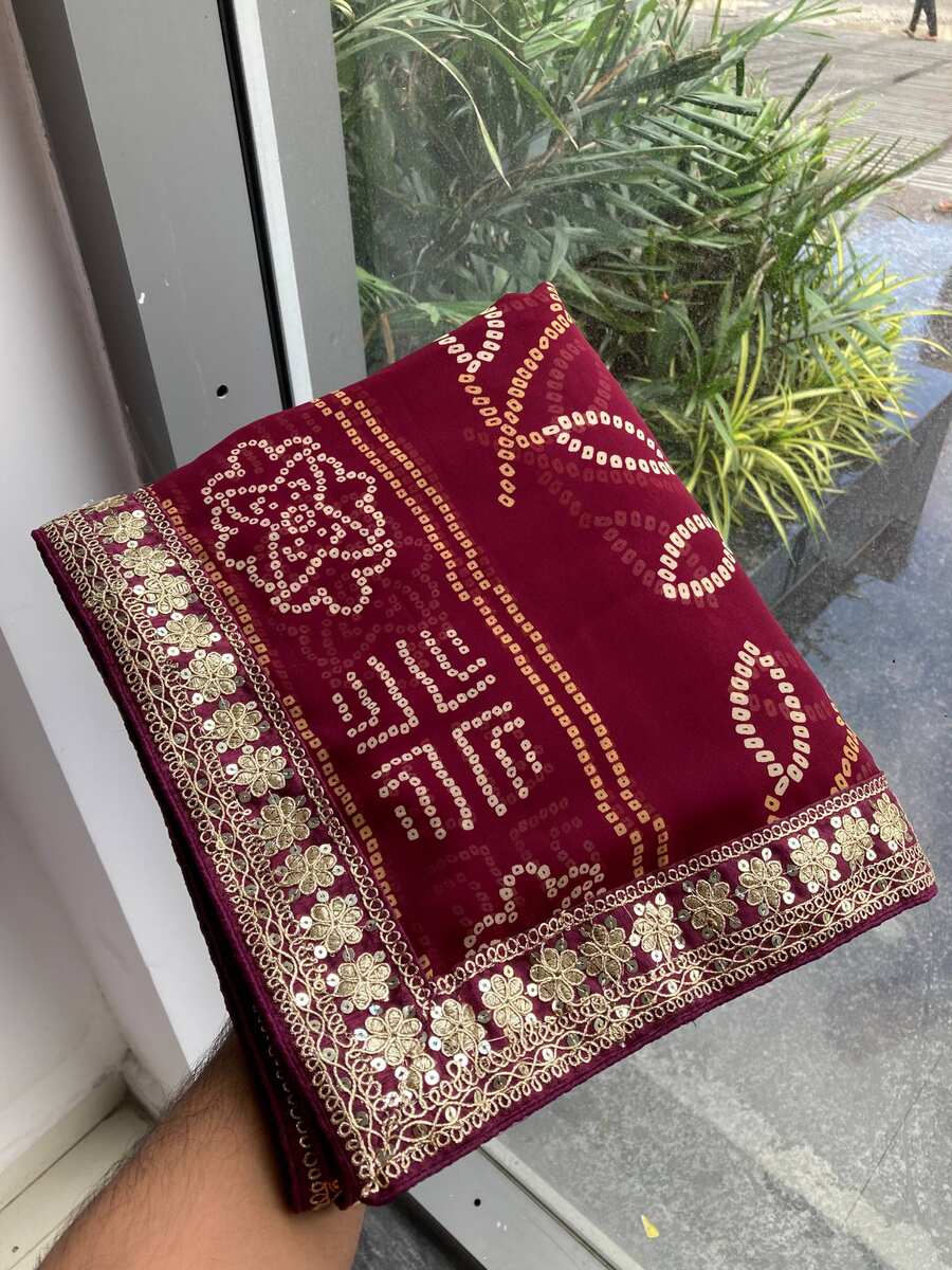 WORK : RAJWADI BANDHEJ PRINT WITH HEAVY EMBROIDERY WORK LACE BORDER