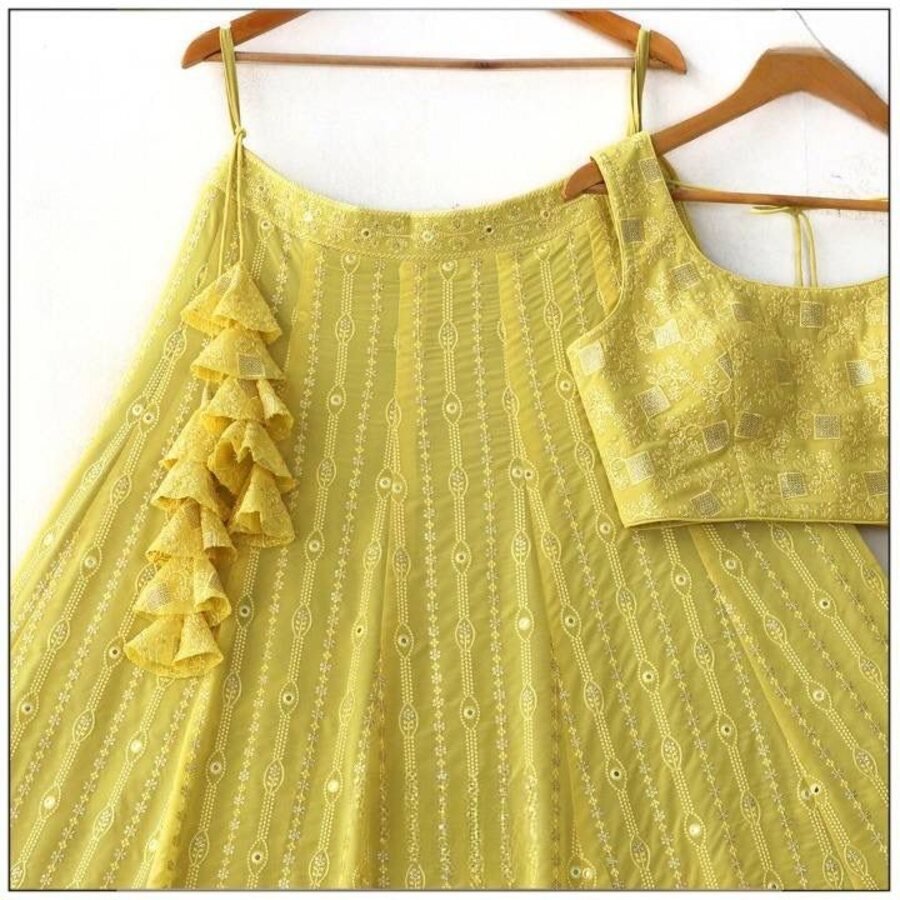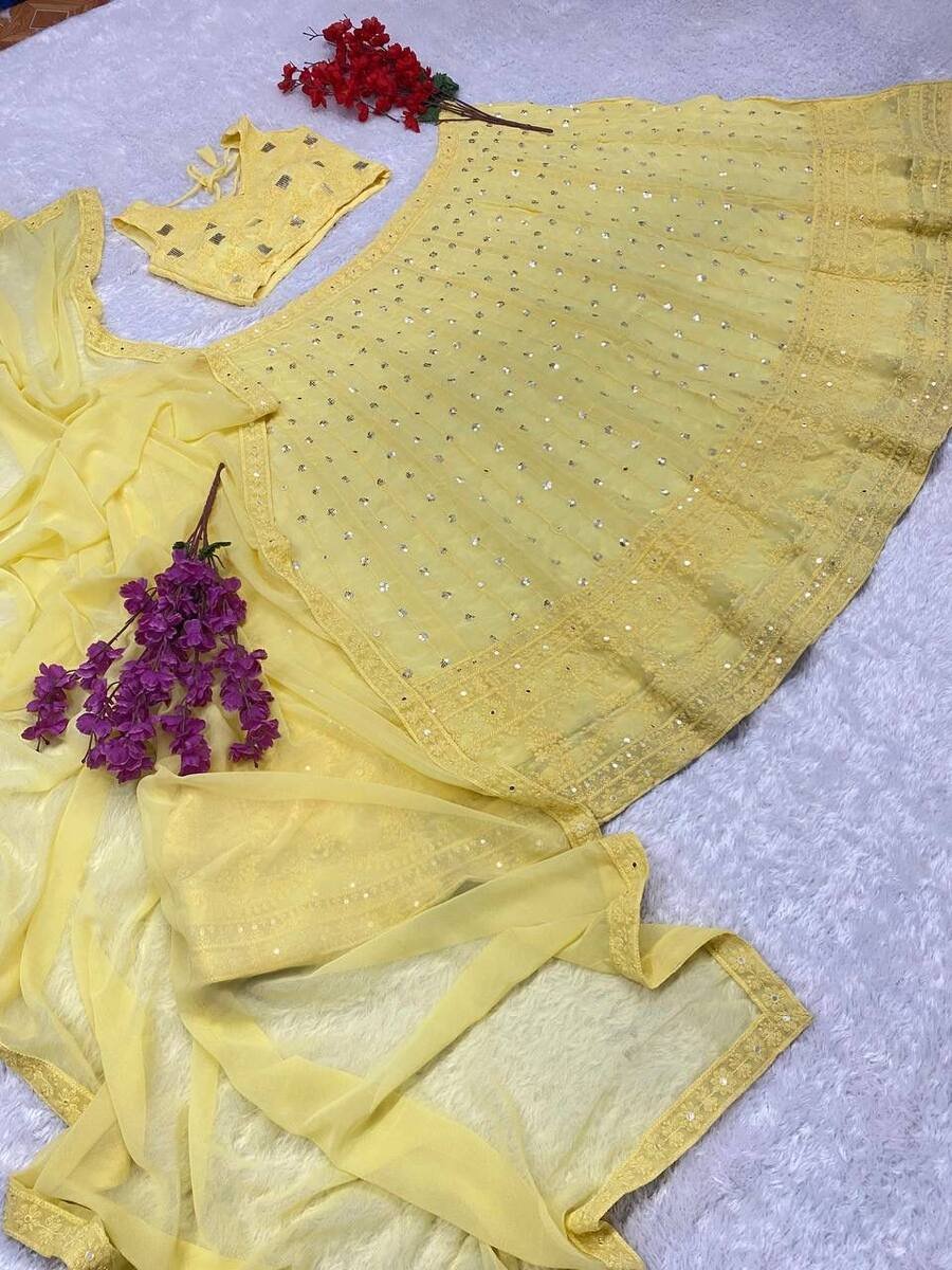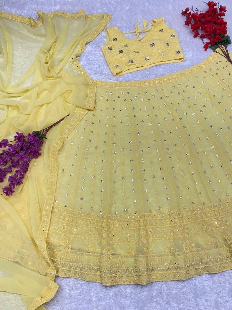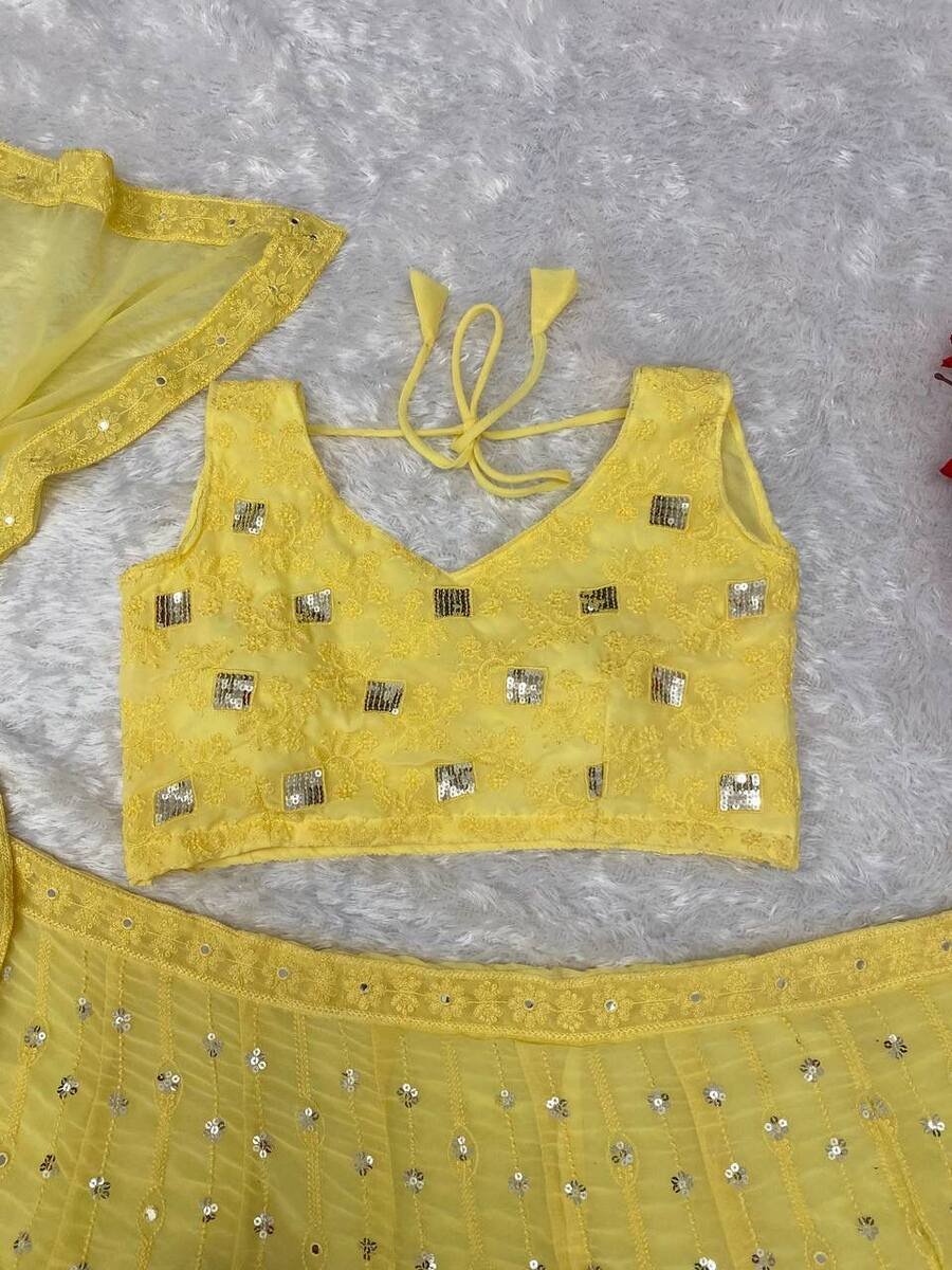 LATEST GEORGETTE SEQUENCE EMBROIDERY WORK LEHENGA CHOLI WITH DUPATTA LEMON