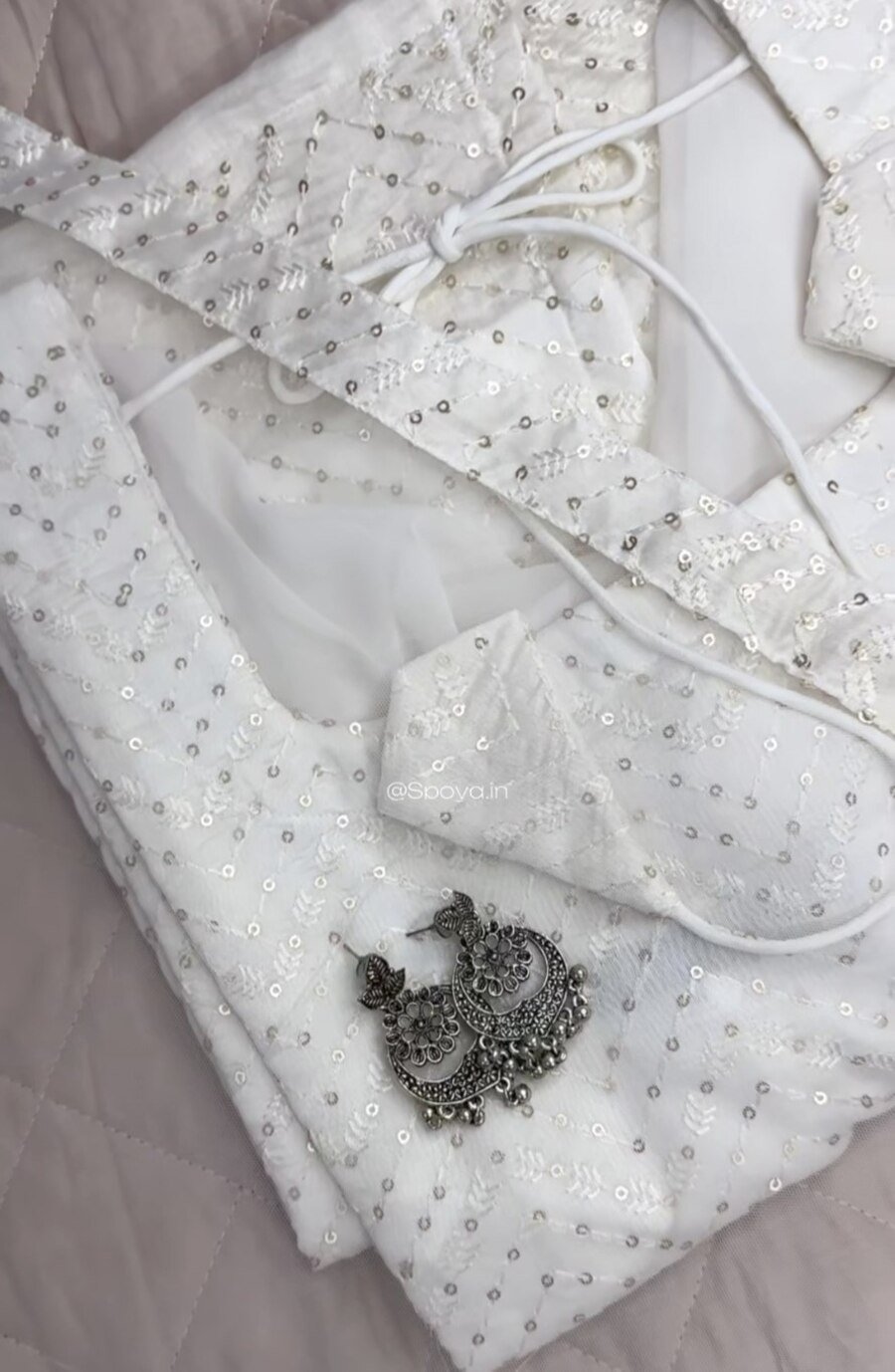 LATEST GEORGETTE SEQUENCE WORK TOP WITH DUPATTA SET WHITE