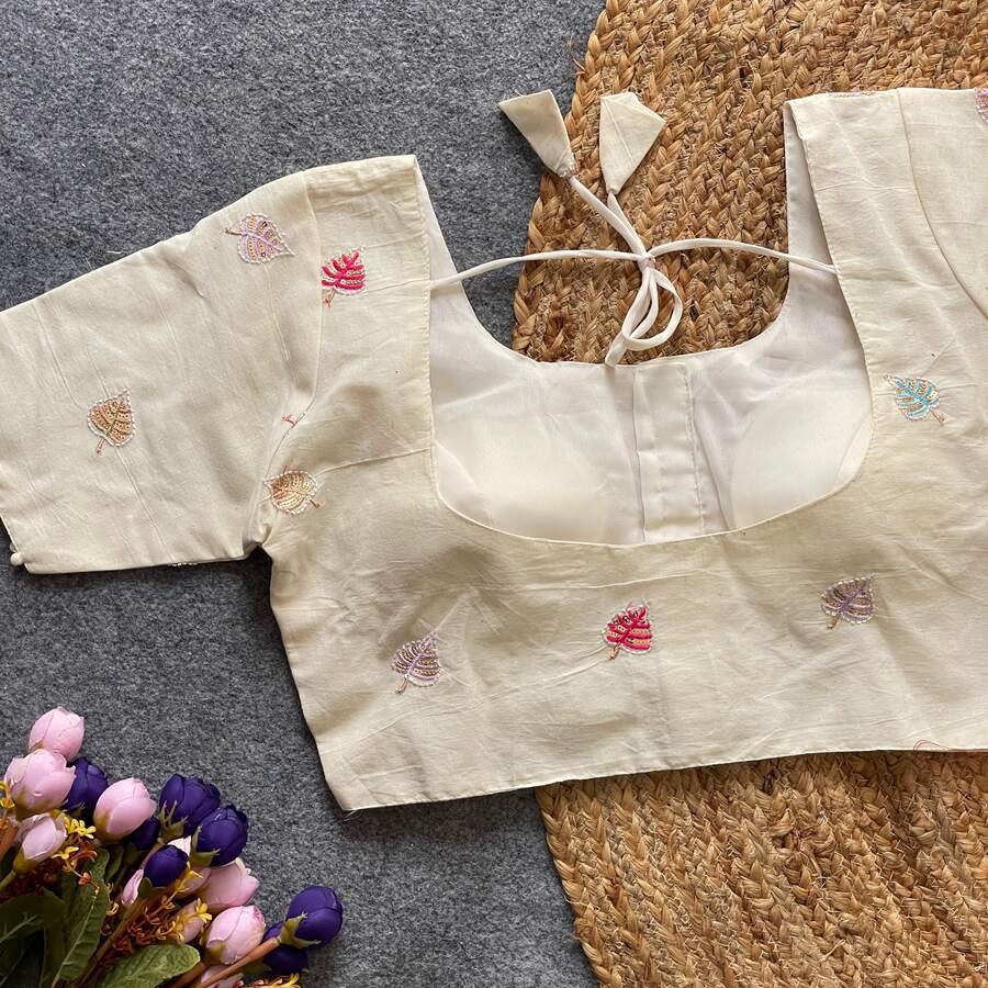 LATEST KHADI COTTON THREAD SEQUENCE WORK STITCHED BLOUSE OFF WHITE