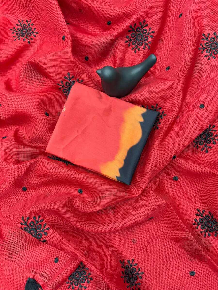 WORK : WEAVING CHECKS PATTERN ALL OVER THE SAREE WITH EMBROIDERY WORK