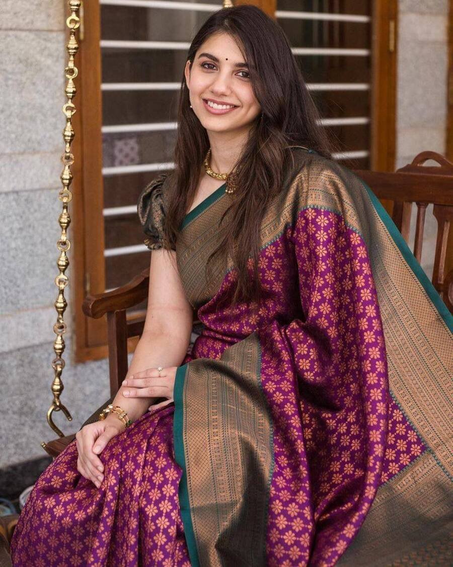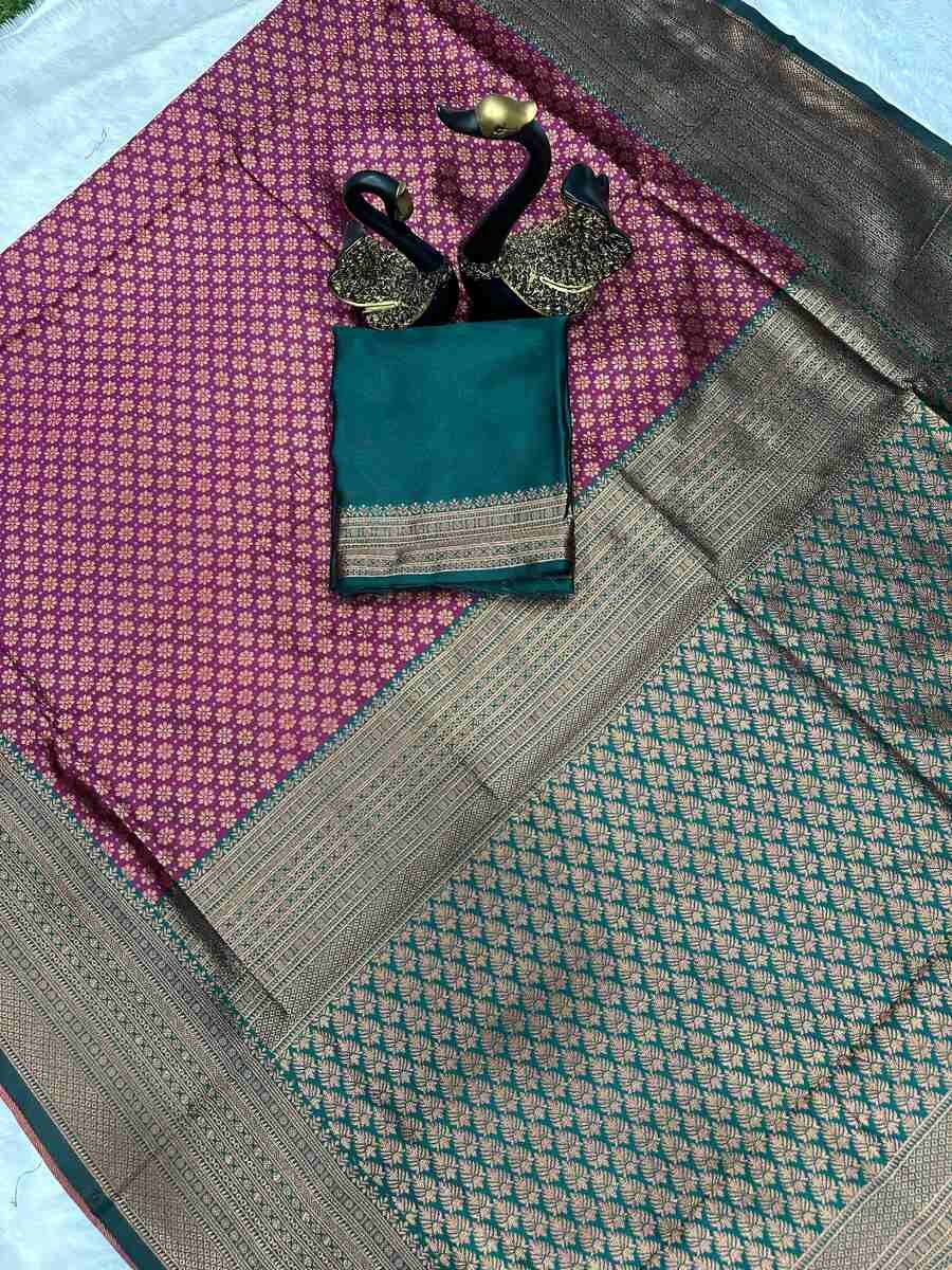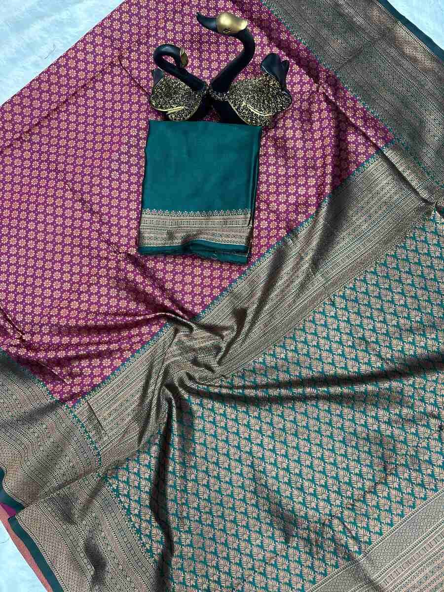 LATEST LICHI SILK ORGANIC BANARASI SAREE WITH UNSTITCHED BLOUSE WINE