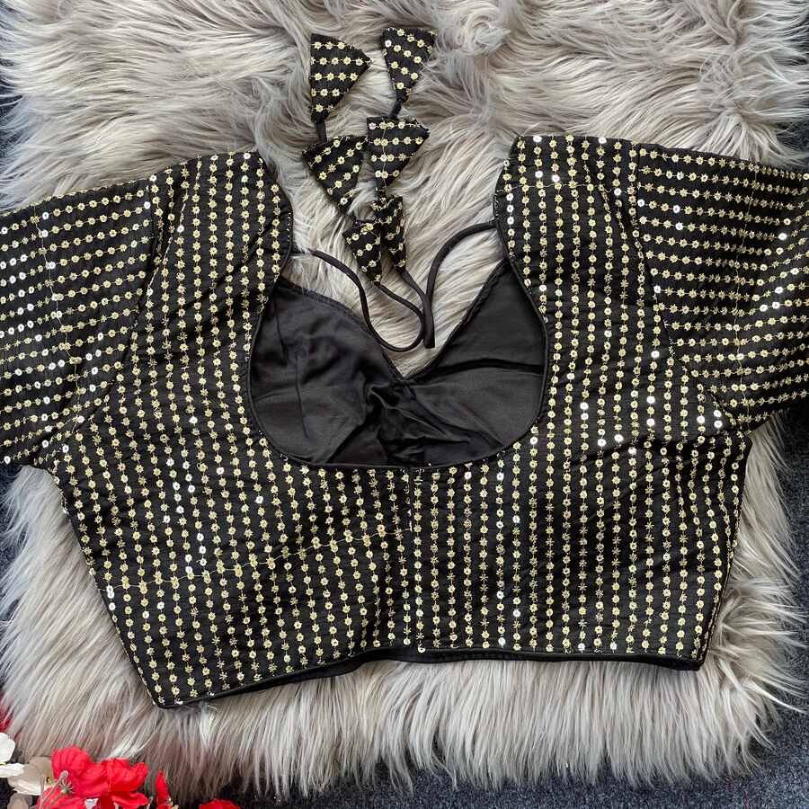 LATEST MONO BANGLORY MULTI SEQUENCE AND JARI WORK STITCHED BLOUSE BLACK