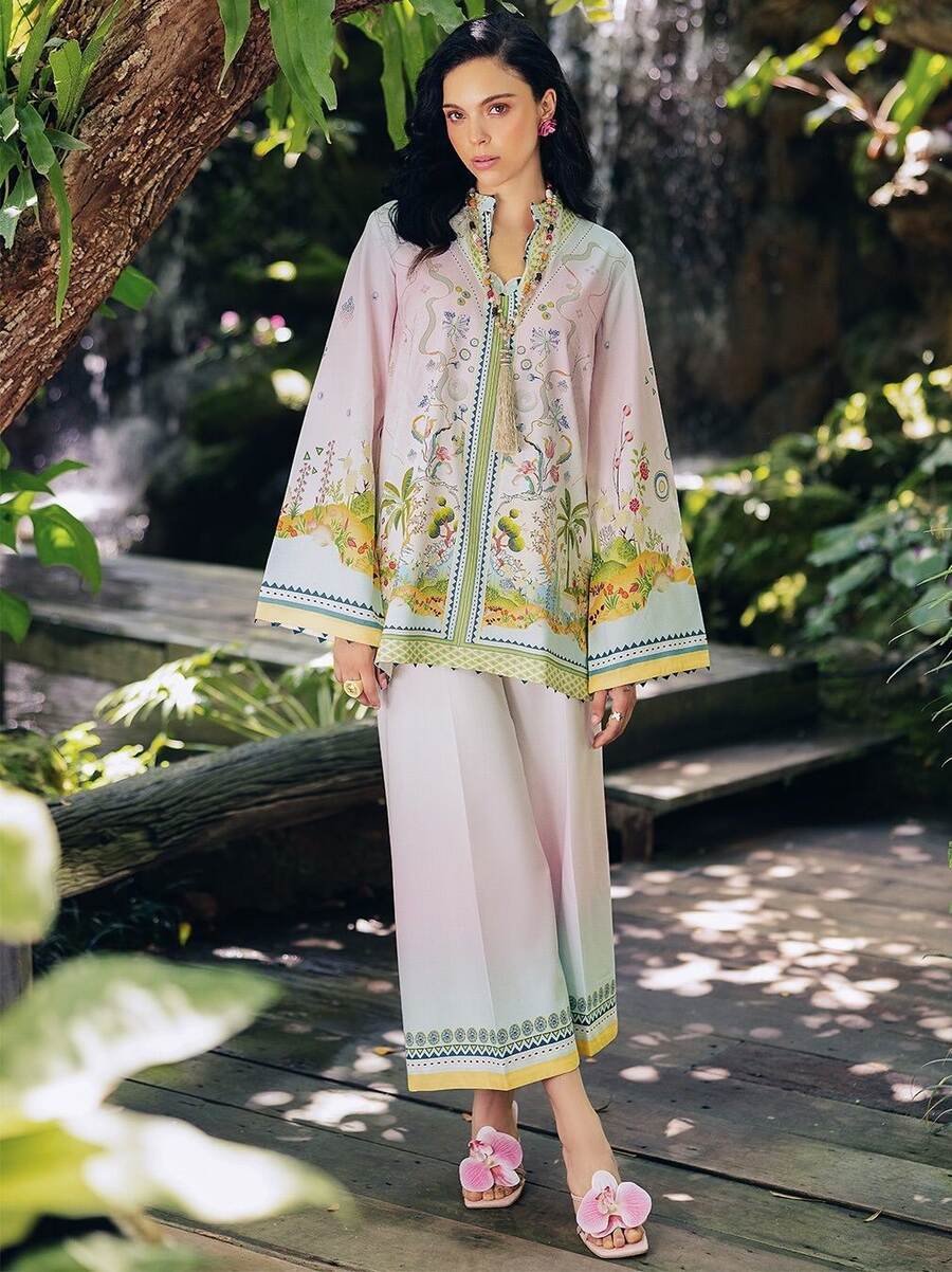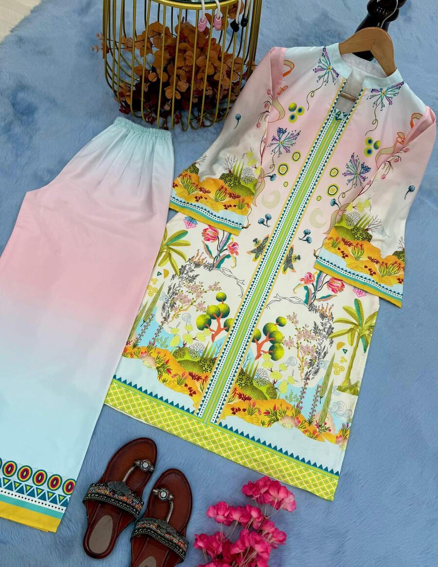 LATEST NATURAL CREPE DIGITAL PRINT WORK TOP PALAZZO SET MULTI