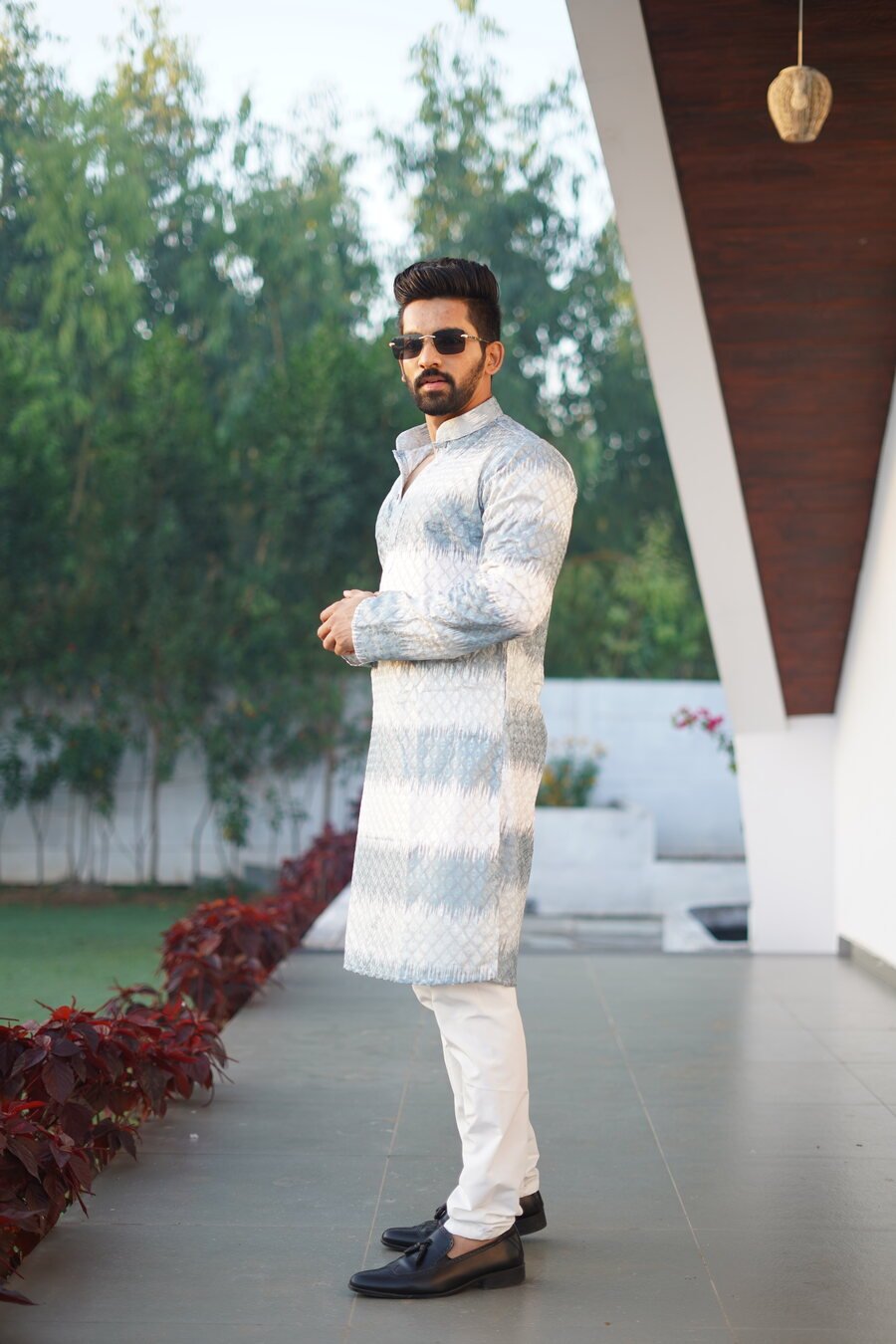 LATEST PC COTTON EMBROIDERY WORK & SHADING PRINT KURTA PAYJAMA GREY