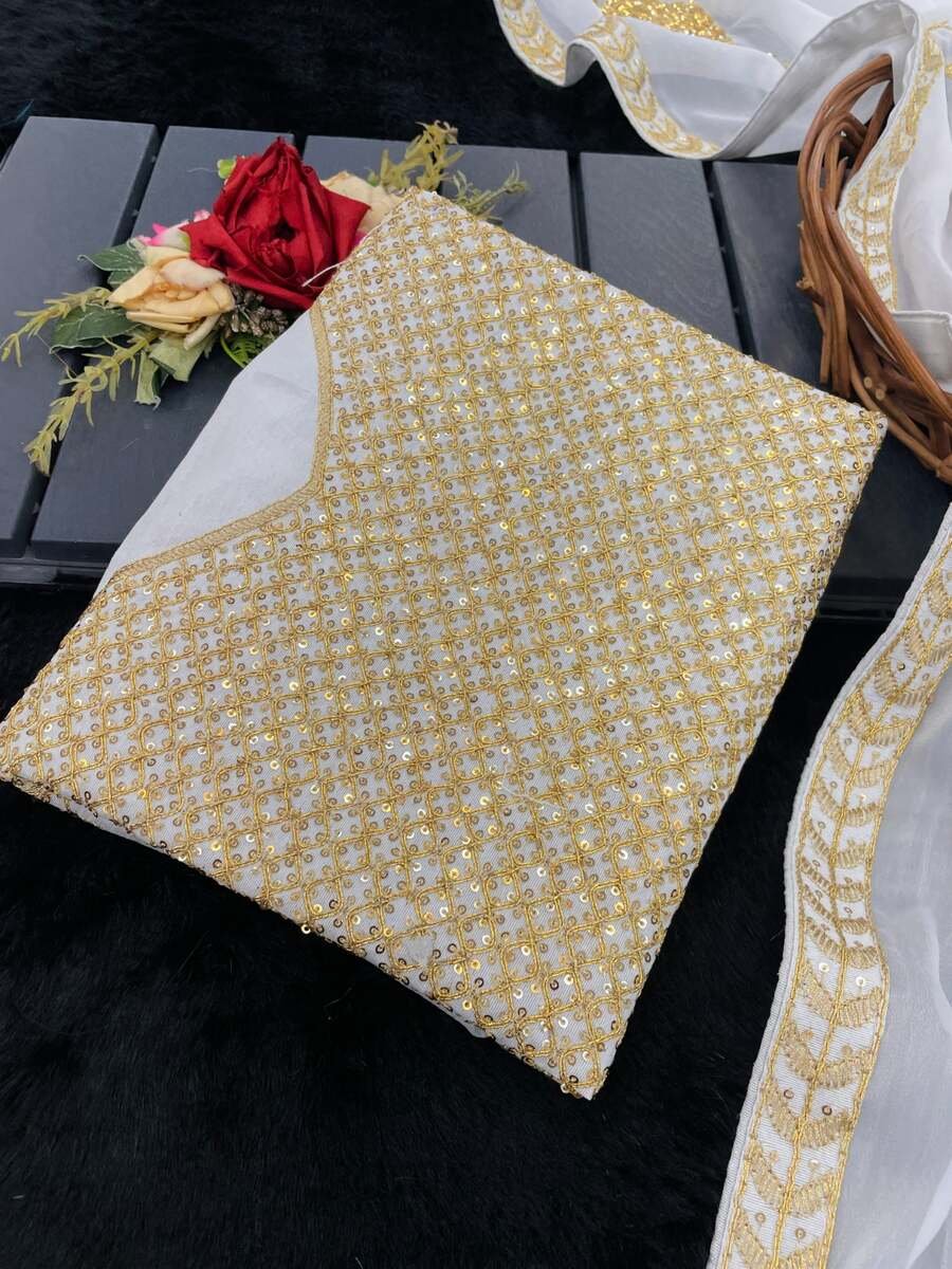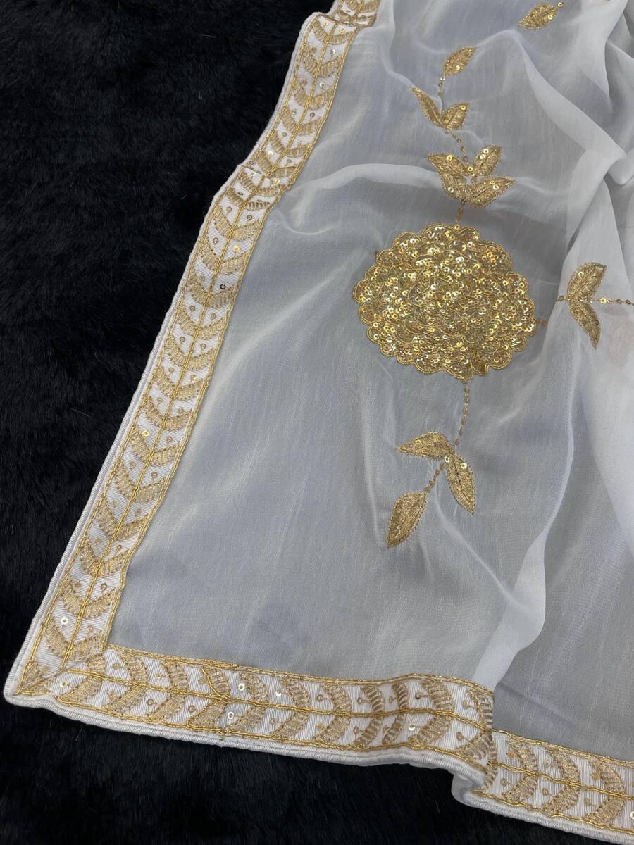 WORK : 3 MM SEQUENCE EMBROIDERY WORK AND GOLDEN ZARI THREAD WORK