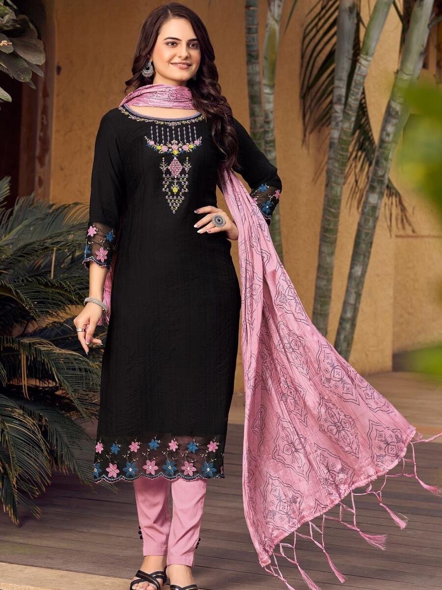 LATEST RAYON EMBROIDERY WORK TOP BOTTOM WITH DUPATTA BLACK