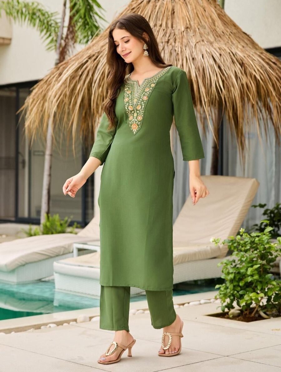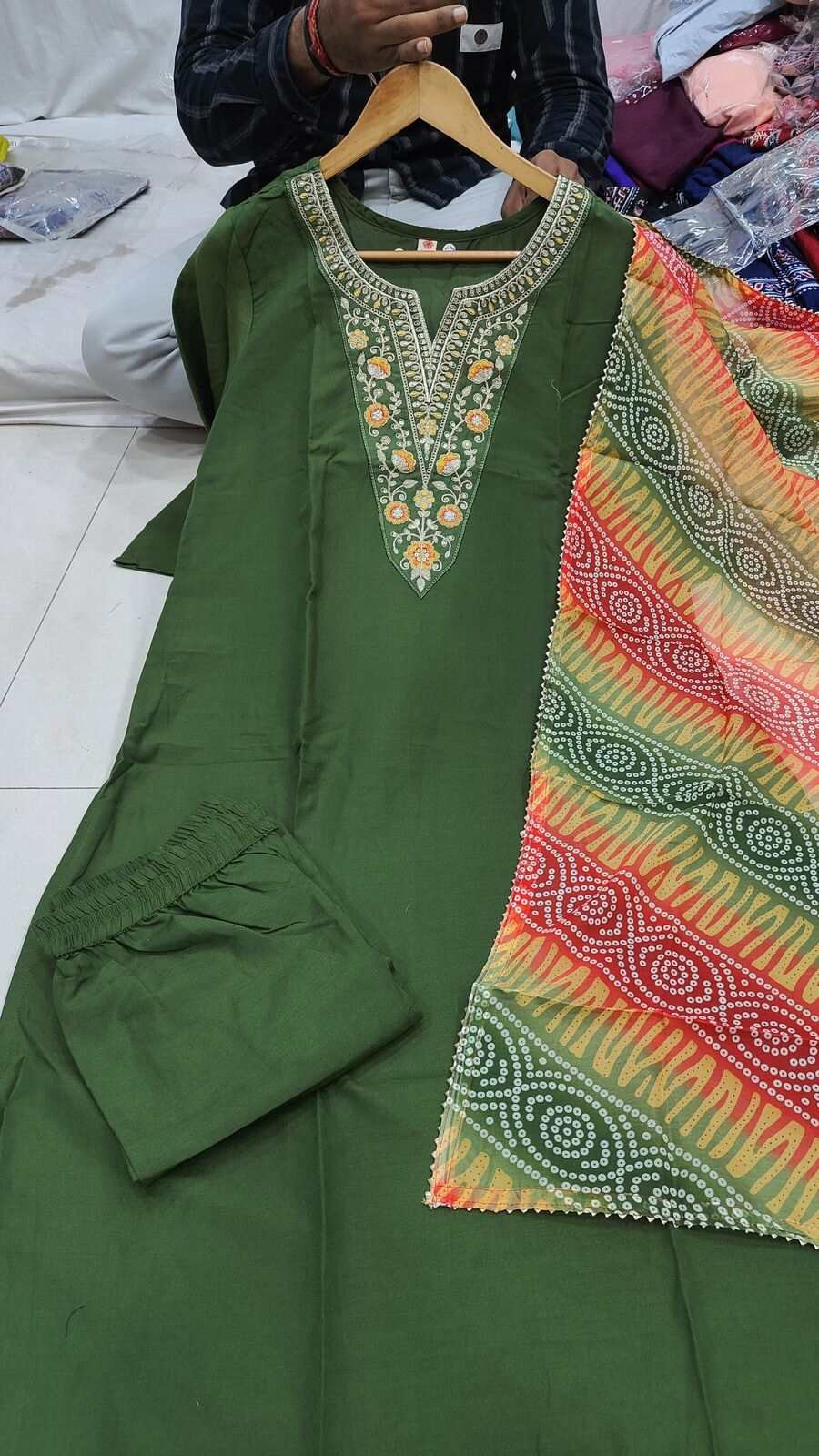 LATEST RAYON EMBROIDERY WORK TOP BOTTOM WITH DUPATTA GREEN
