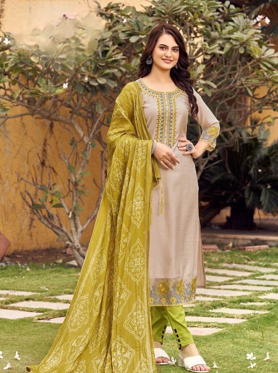 LATEST RAYON EMBROIDERY WORK TOP BOTTOM WITH DUPATTA MEHNDI