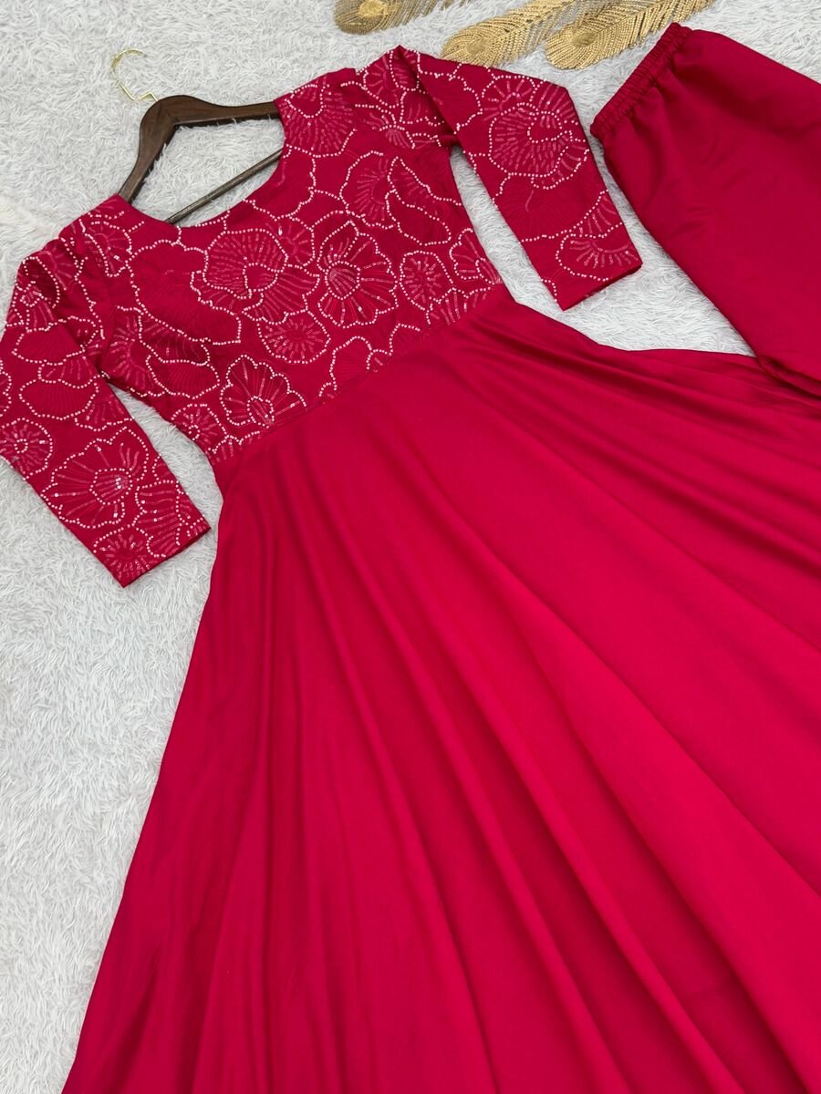 LATEST ROMAN SILK EMBROIDERY THREAD AND SEQUENCE WITH BEADS HAND WORK GOWN WITH BOTTOM SET RANI