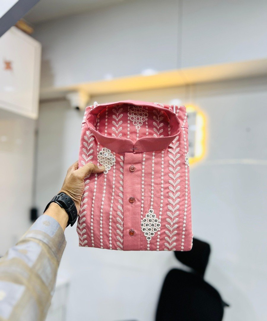 LATEST ROYAL LINEN EMROIDERY WITH SEQUENCE WORK KURTA PAYJAMA PINK