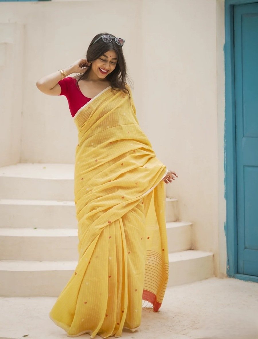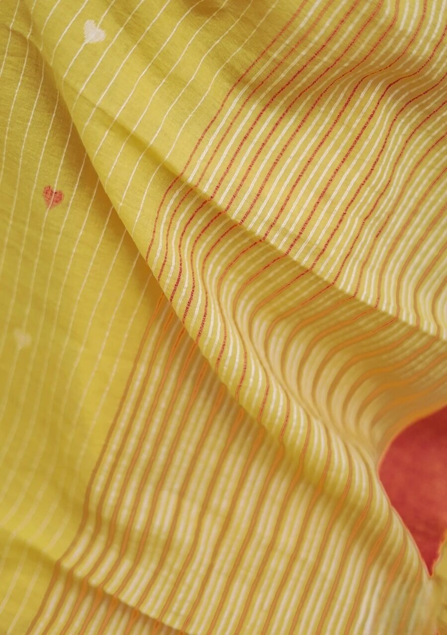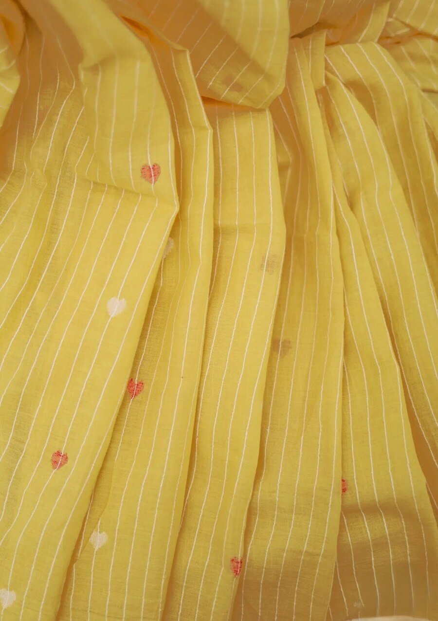 LATEST SOFT COTTON WEAVING WORK SAREE WITH UNSTITCHED BLOUSE YELLOW