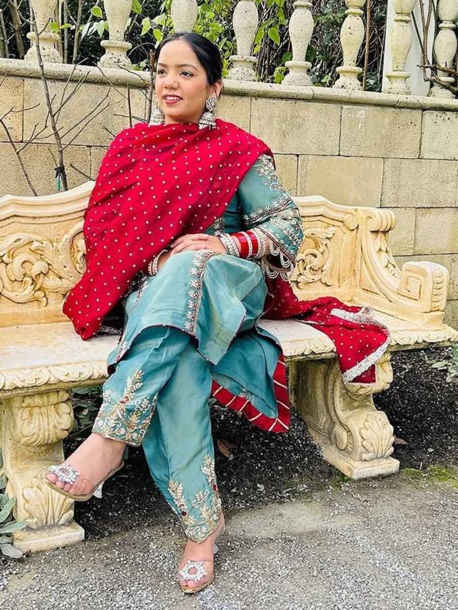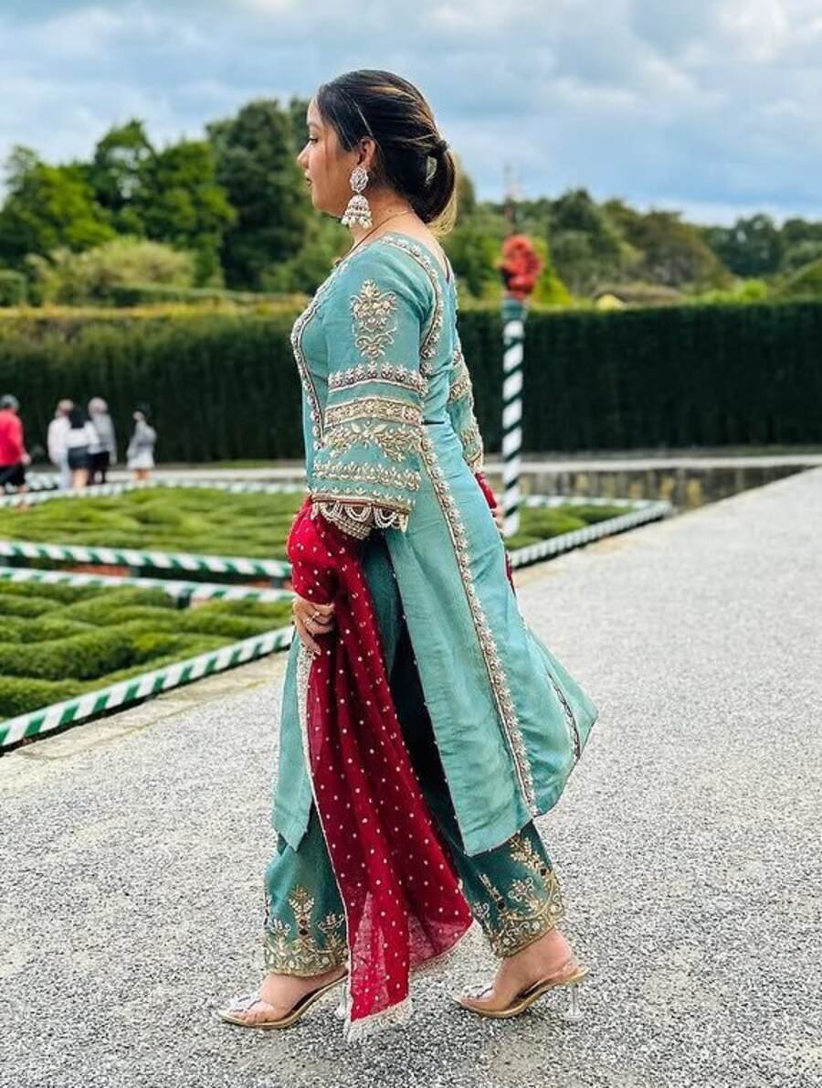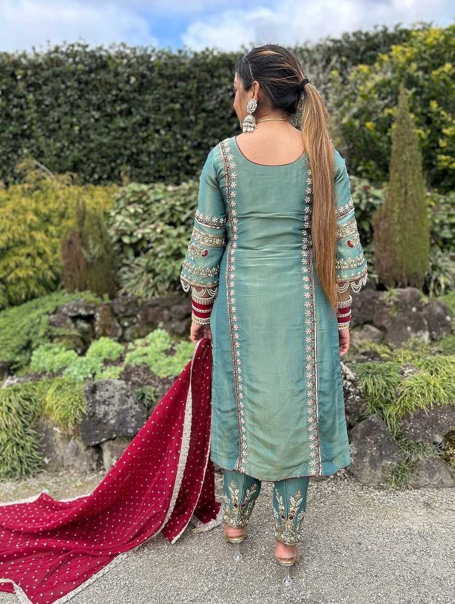 LATEST TABBY ORGANZA CHAIN STITCH WORK AND FANCY HAND WORK TOP PALAZZO WITH DUPATTA SKY
