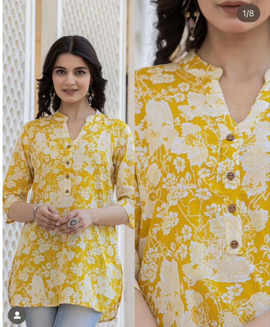 LATEST TWILL RAYON DIGITAL PRINTED TOP YELLOW