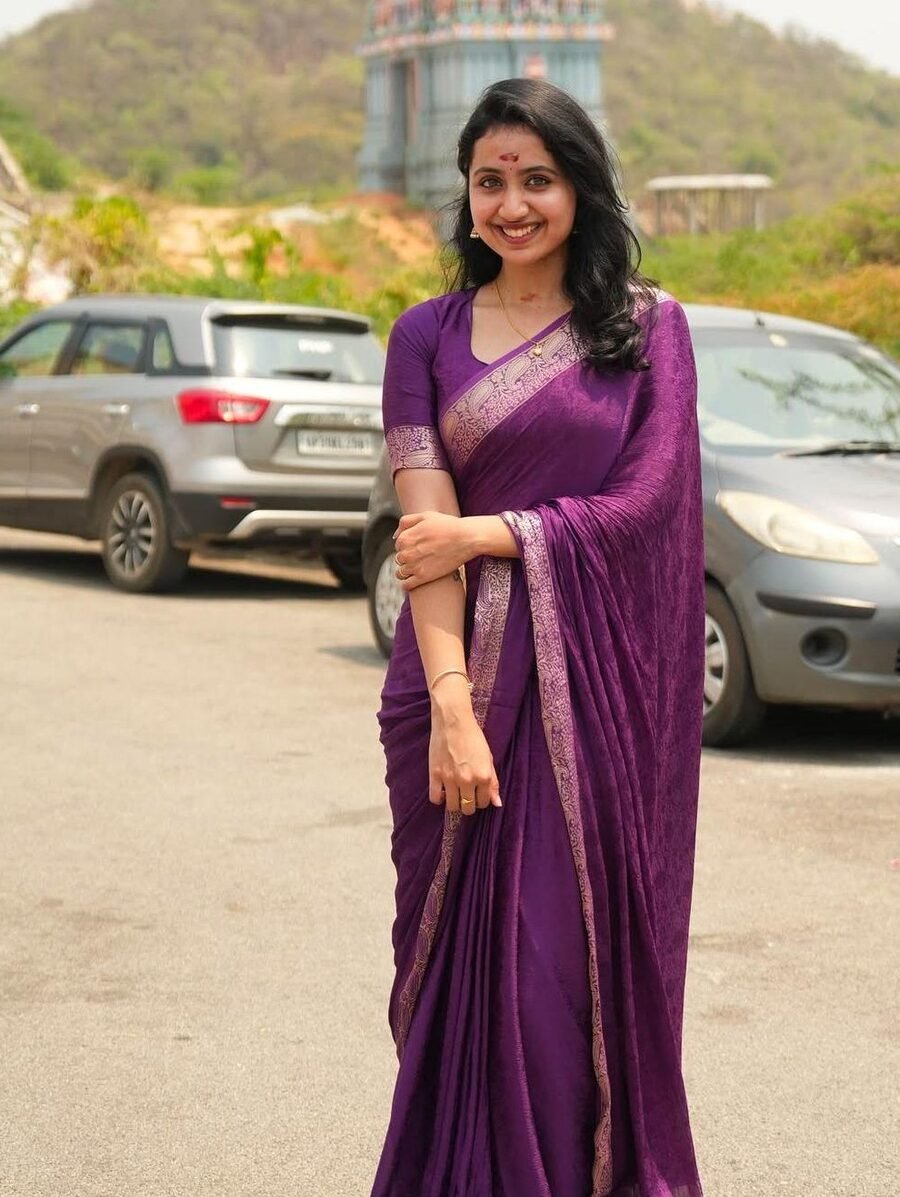 LATEST VISCOSE CHINON WEAVING PATTERN WORK SAREE WITH UNSTITCHED BLOUSE VIOLET