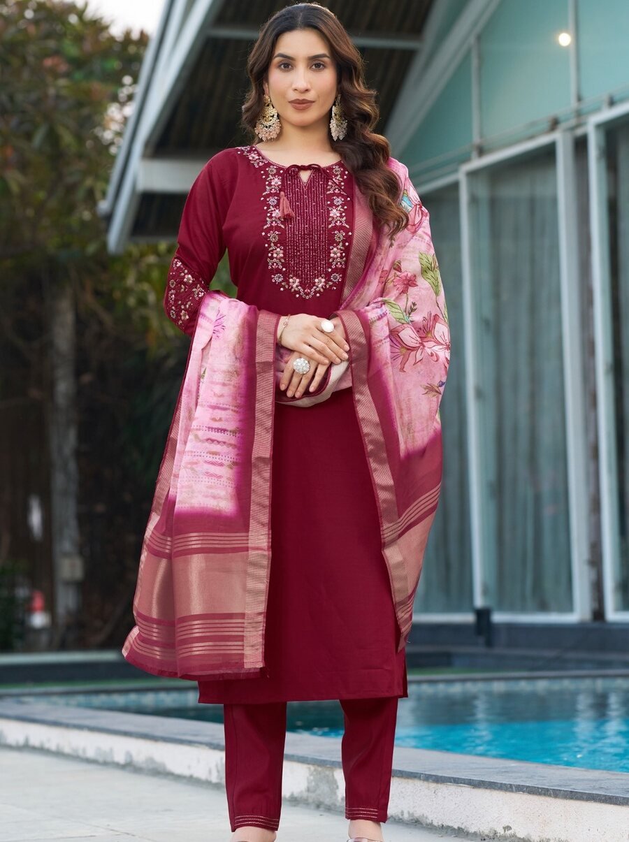 LATEST VISCOSE SILK MULTI EMBROIDERY THREAD, WITH HAND WORK TOP BOTTOM WITH DUPATTA MAROON