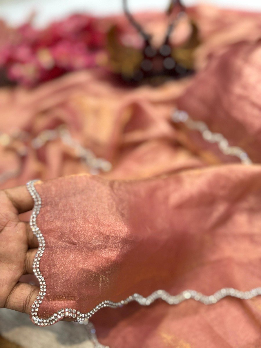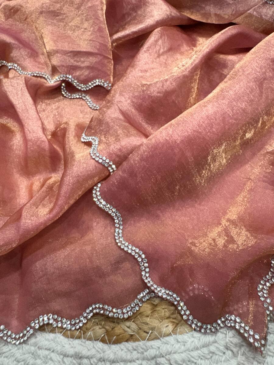 LUXURY SPACE SILK JARKAN DIAMOND WORK SAREE WITH UNSTITCHED BLOUSE PARTY WEAR WHOLESALE PRICE ETHNIC GARMENT ORANGE