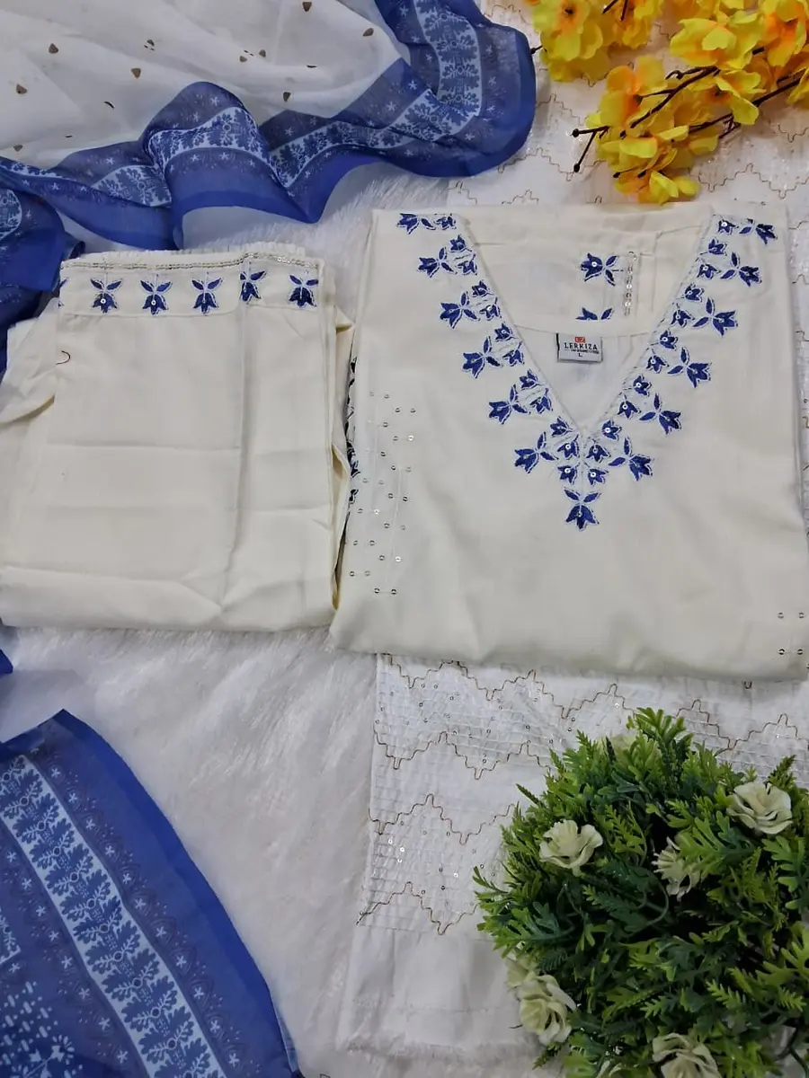 MODERN COTTON EMBROIDERY SEQUENCE WORK TOP BOTTOM WITH DUPATTA BLUE