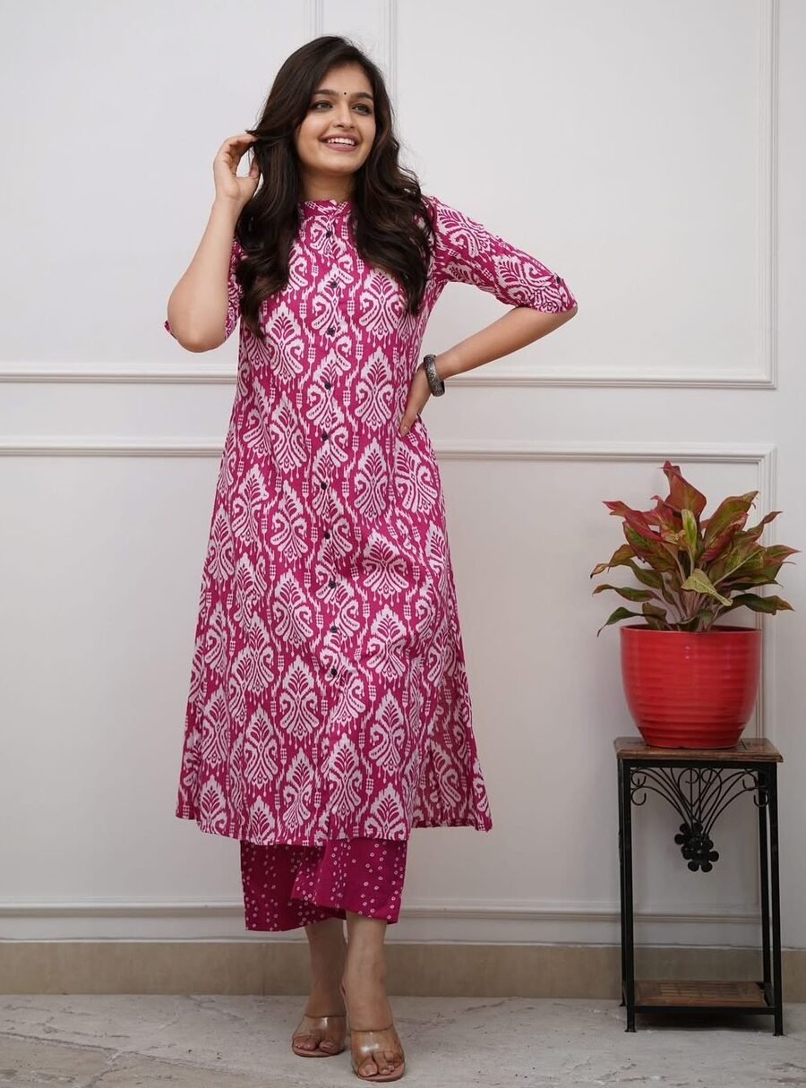 MODERN COTTON PRINTED WORK TOP PENT SET PINK