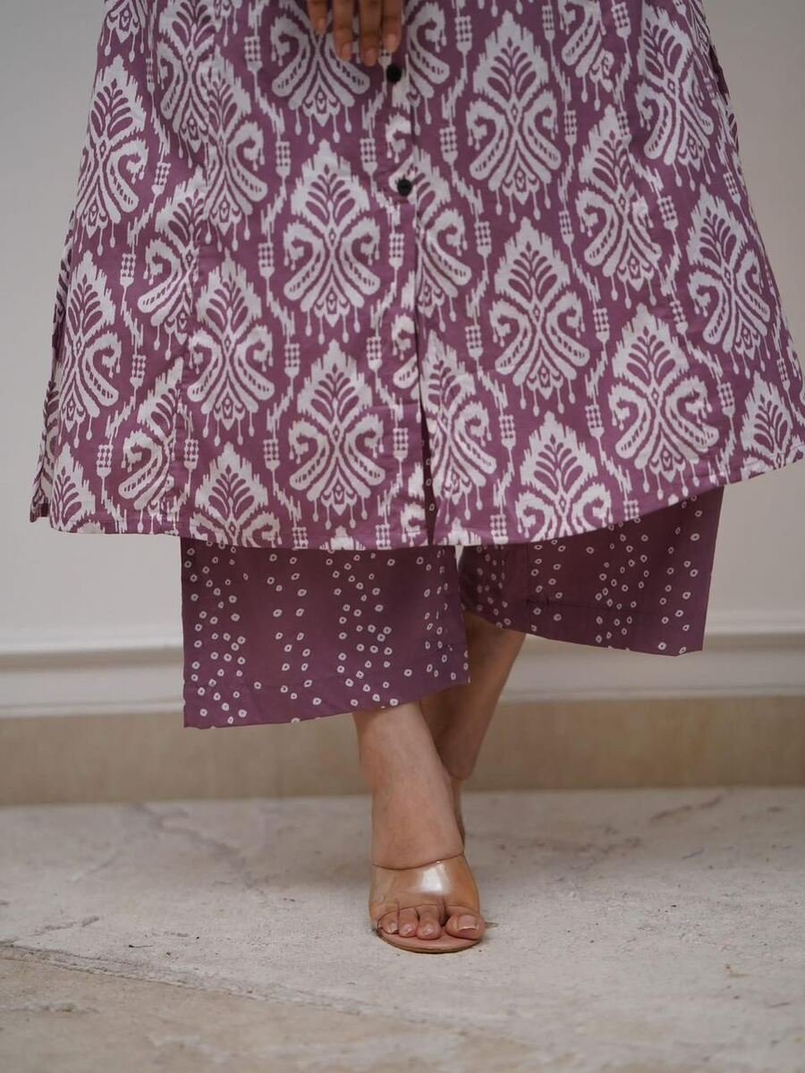 MODERN COTTON PRINTED WORK TOP PENT SET PINK