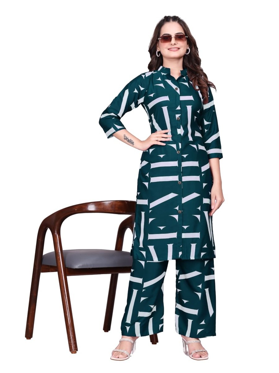 MODERN CREPE PRINTED WORK TOP BOTTOM SET GREEN