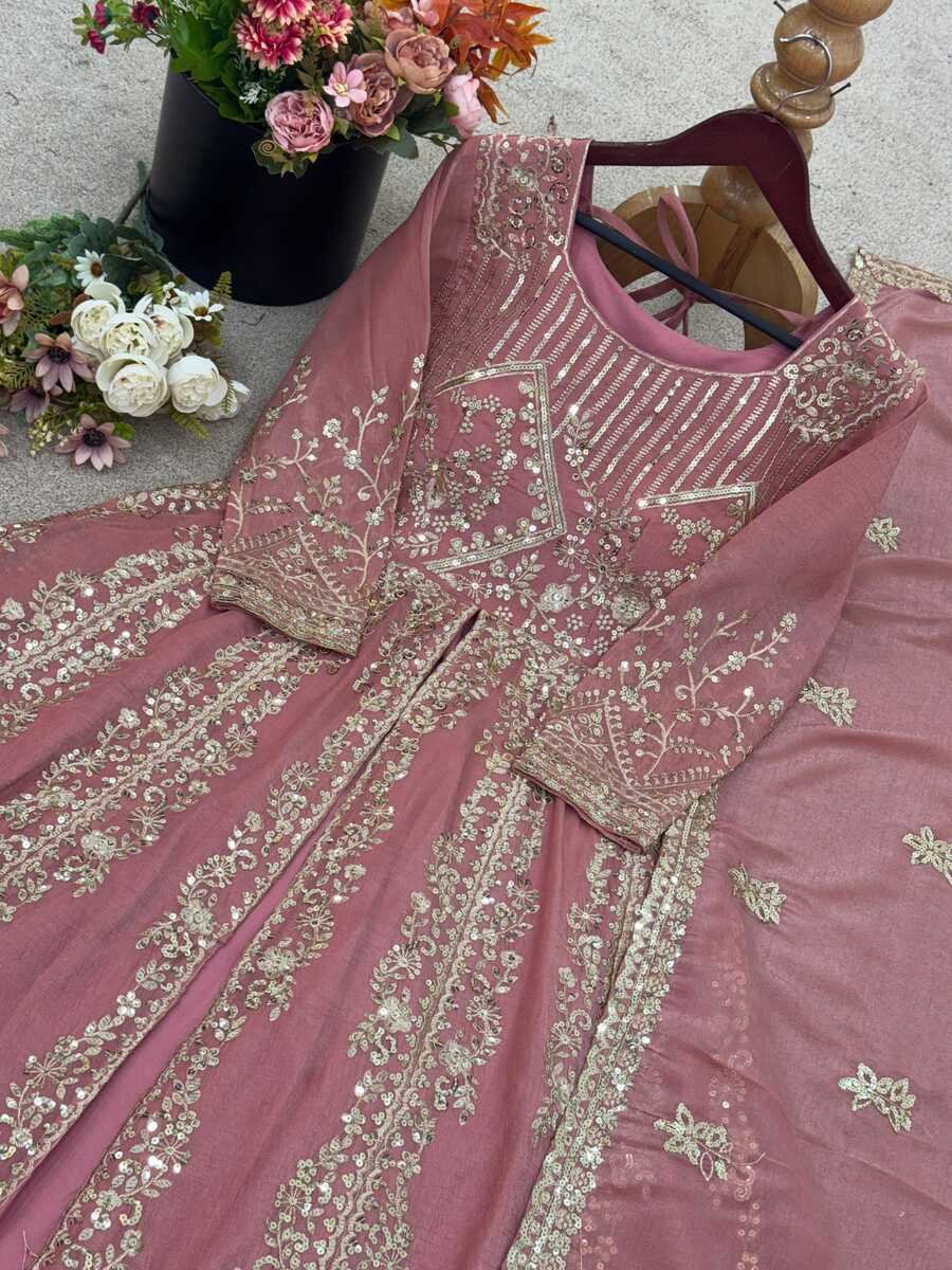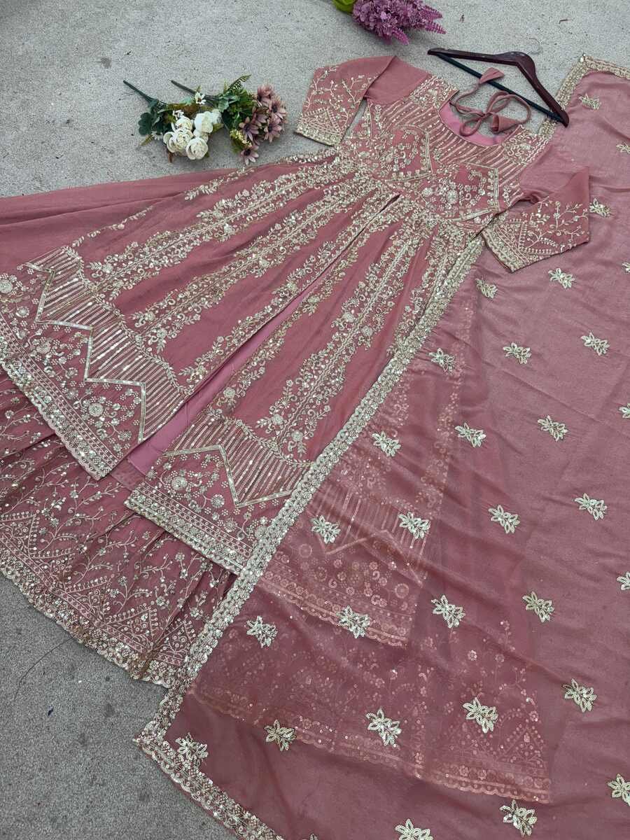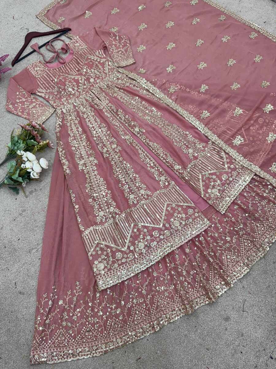 MODERN CRUNCHY SILK EMBROIDERY SEQUENCE WORK TOP PALAZZO WITH DUPATTA PEACH