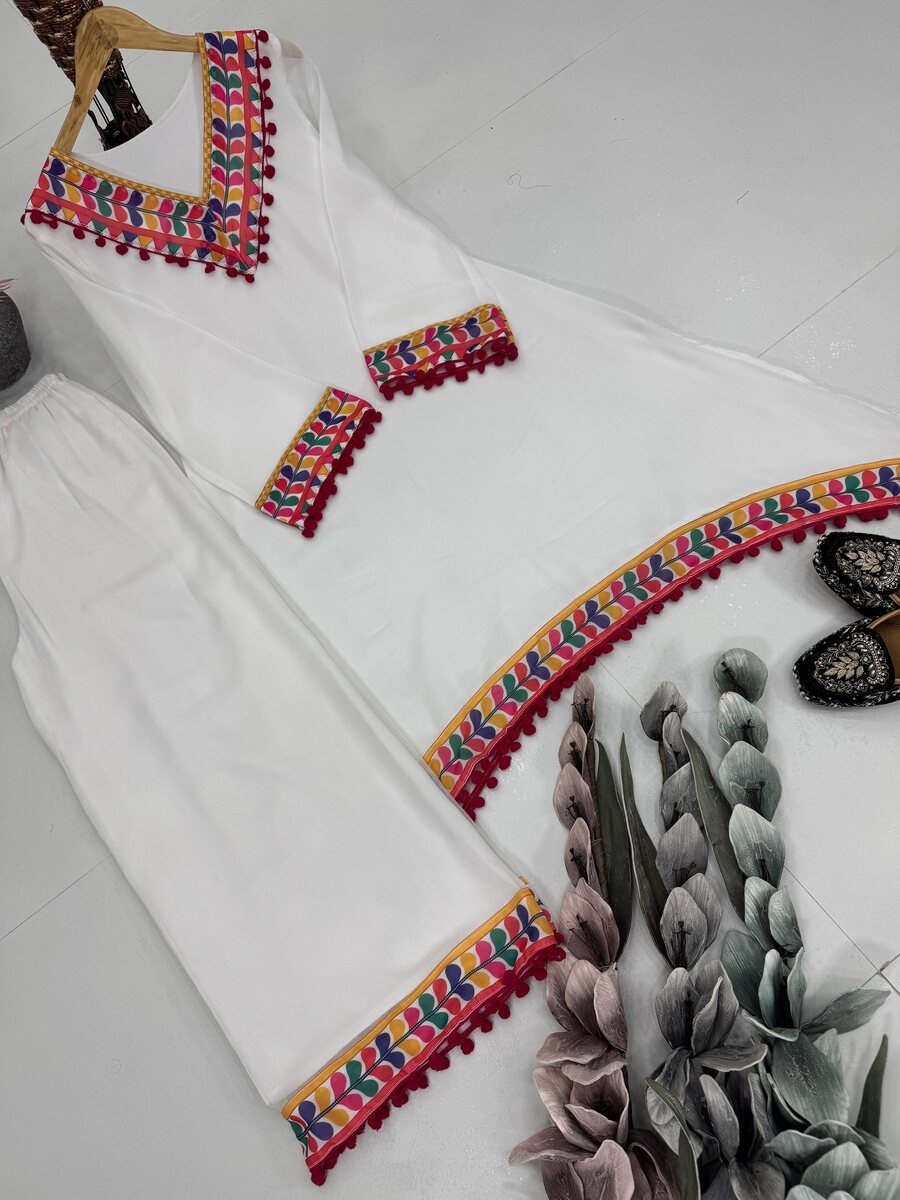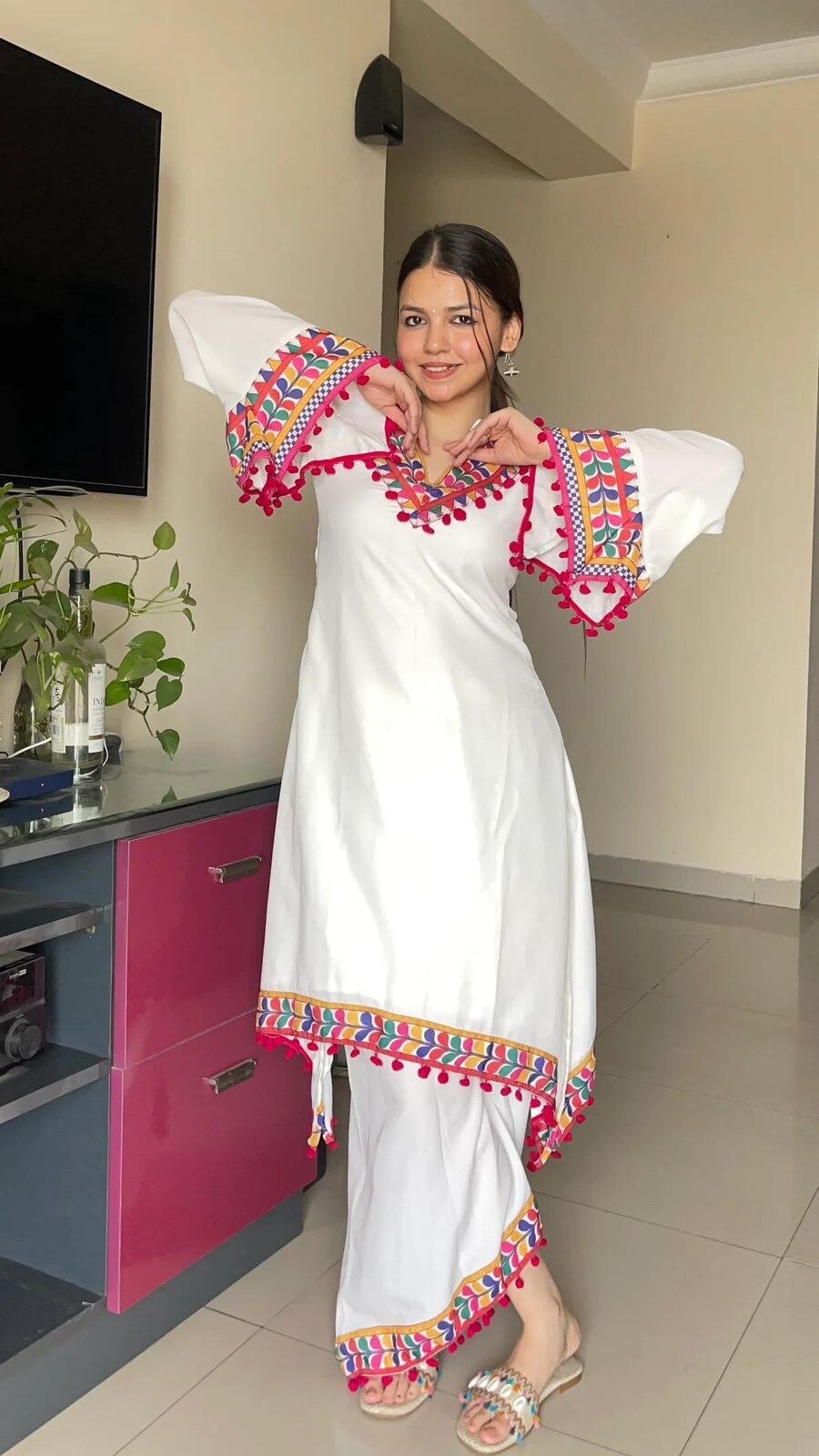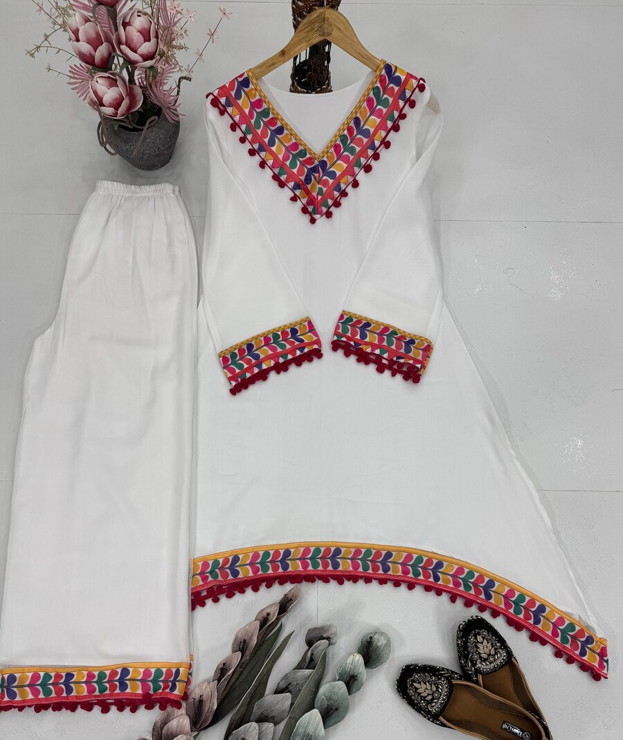 WORK : FANCY DIGITAL PRINT WITH PUM PUM LACE