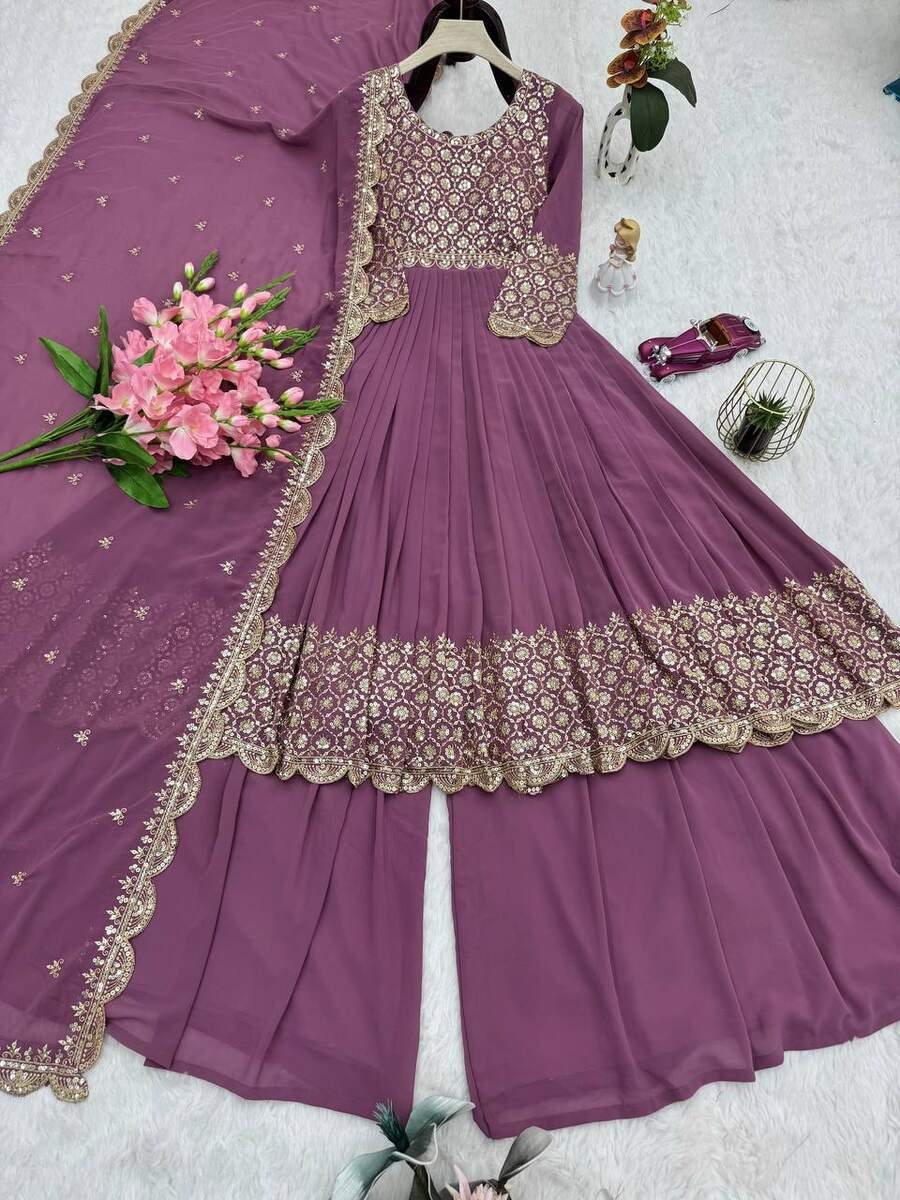 MODERN GEORGETTE EMBROIDERY & SEQUENCE WORK GOWN PALAZZO WITH DUPATTA LAVENDER