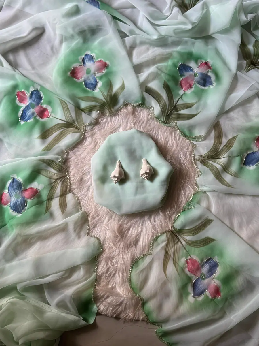 WORK : HANDPAINT FLOWER PRINT PANEL WORK WITH CUT DANA HANDWORK
