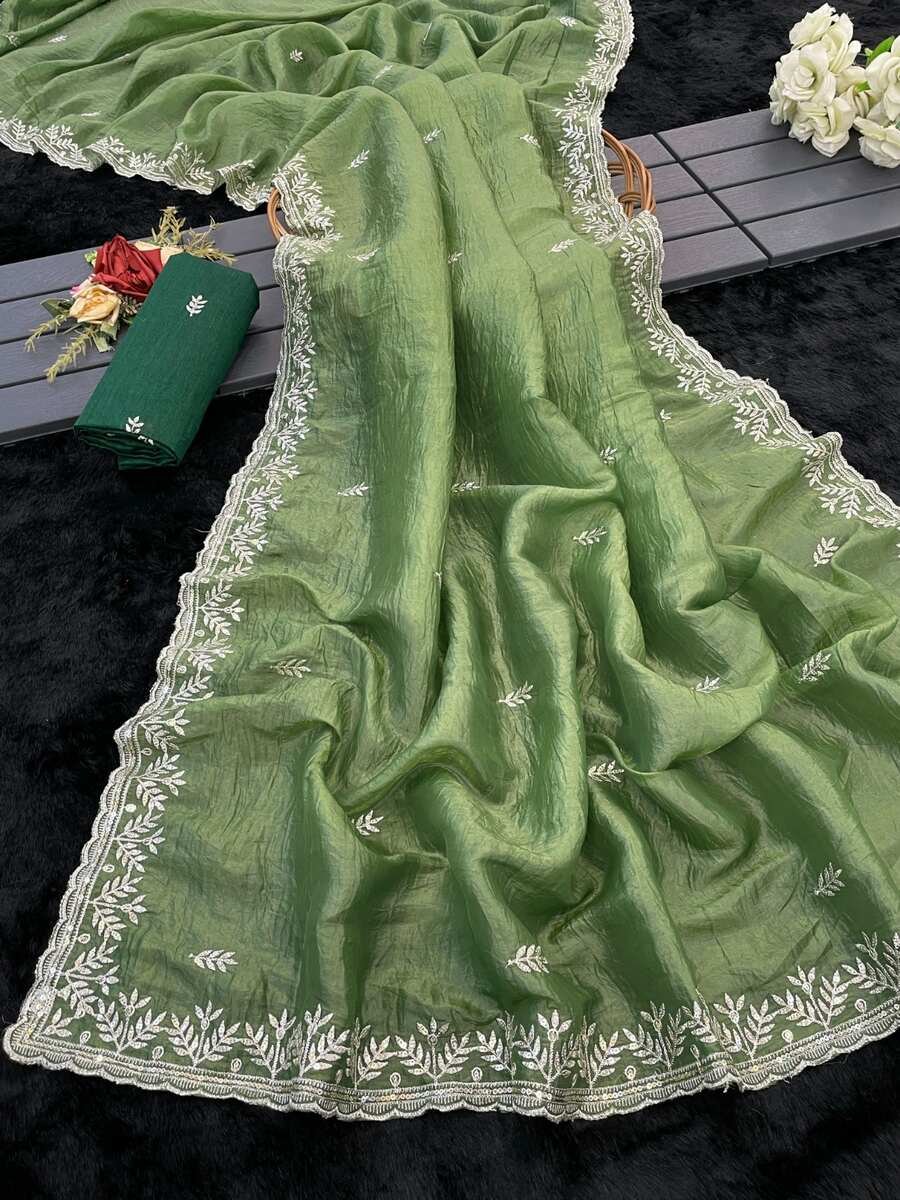 MODERN GOLD CRUSH MULTI THREAD EMBROIDERY WITH SEQUENCE WORK SAREE WITH UNSTITCHED BLOUSEMODERN GOLD CRUSH MULTI THREAD EMBROIDERY WITH SEQUENCE WORK SAREE WITH UNSTITCHED BLOUSE PISTA