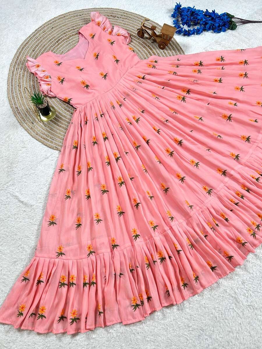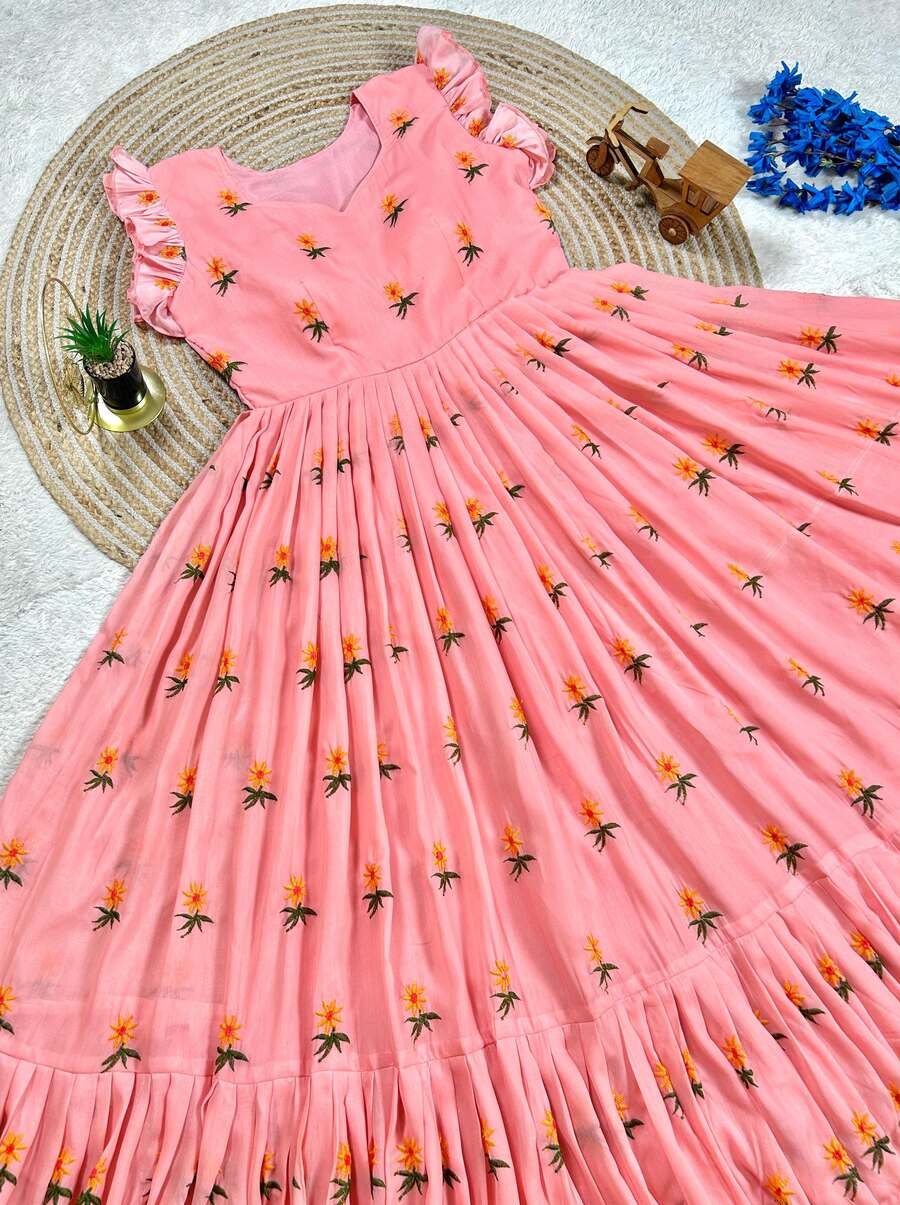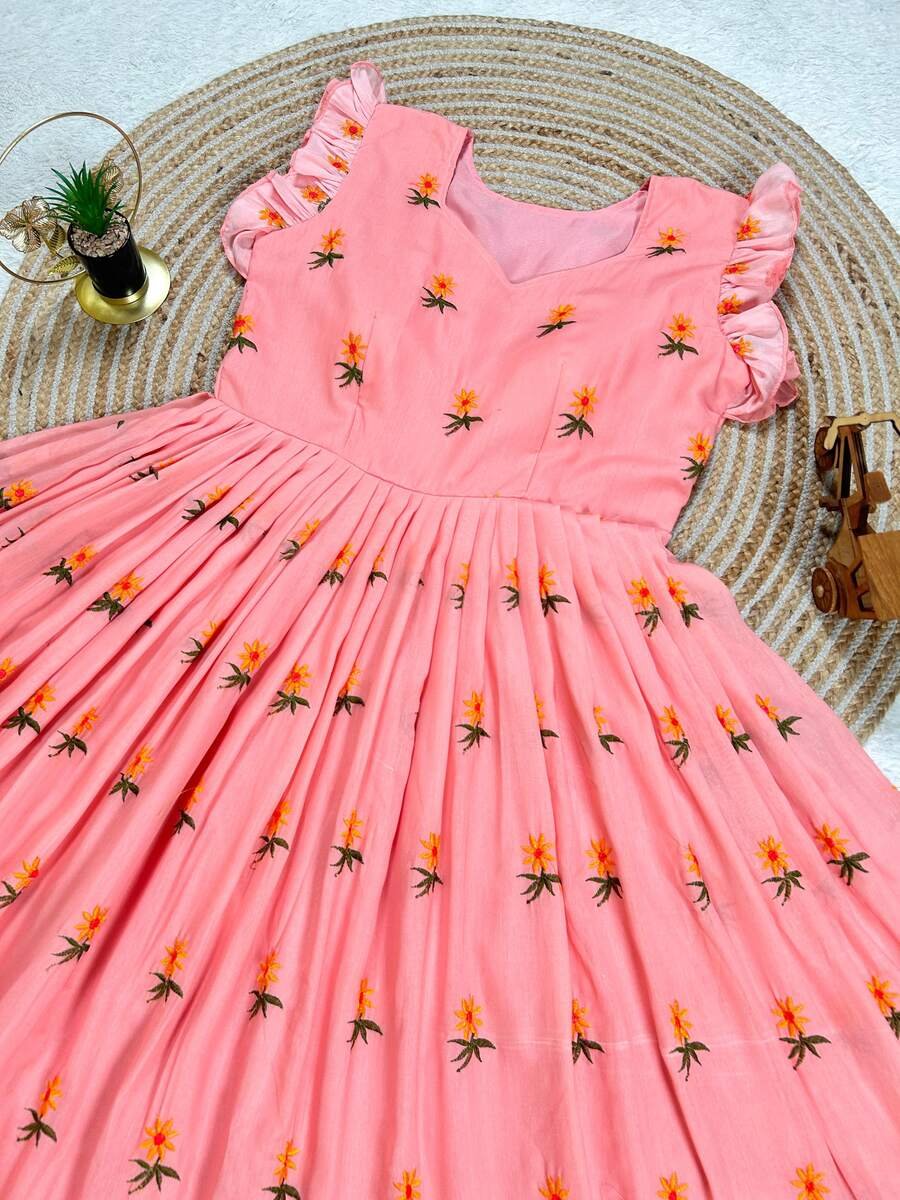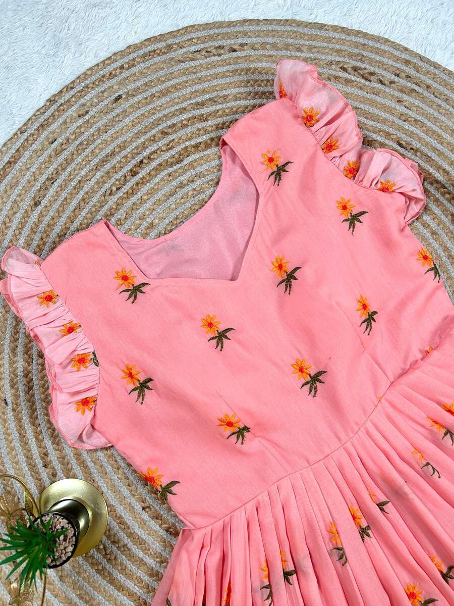 MODERN MUL MUL COTTON PRINT AND EMBROIDERY THREAD WORK ONE PIECE BABY PINK