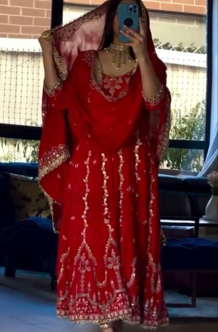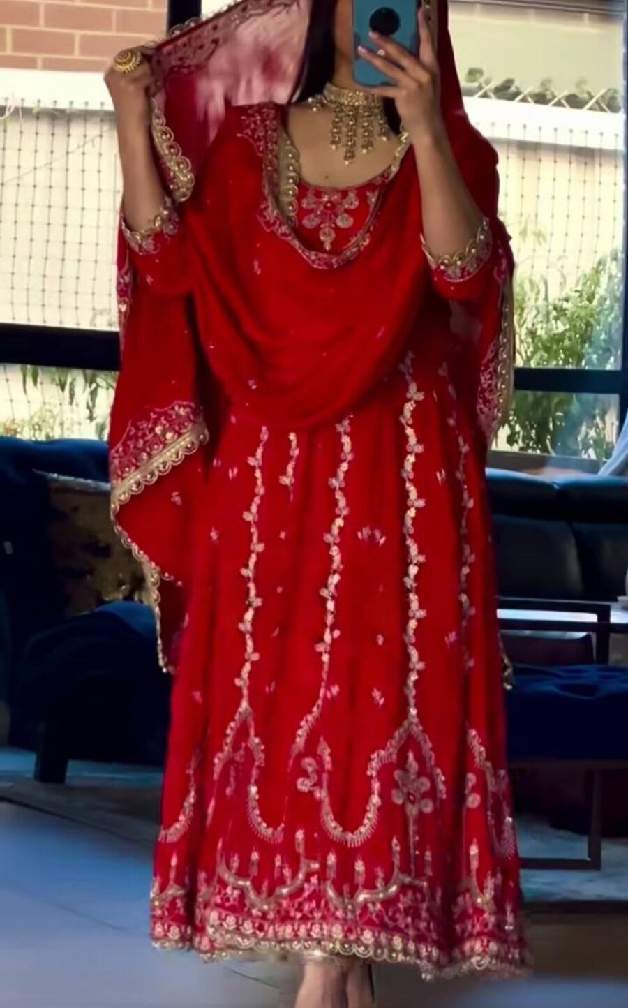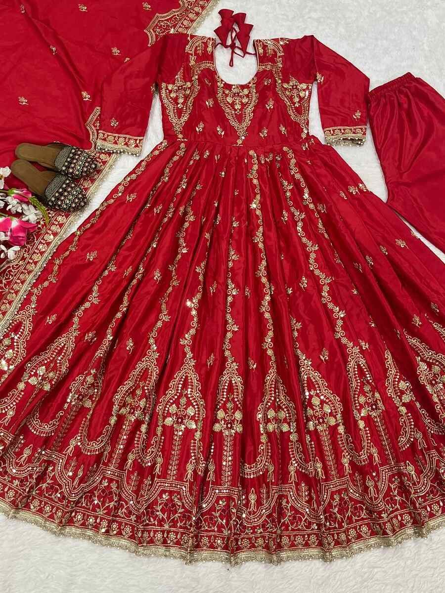 MODERN NATURAL CREPE SEQUENCE AND EMBROIDERY WORK ANARKALI BOTTOM WITH DUPATTA RED