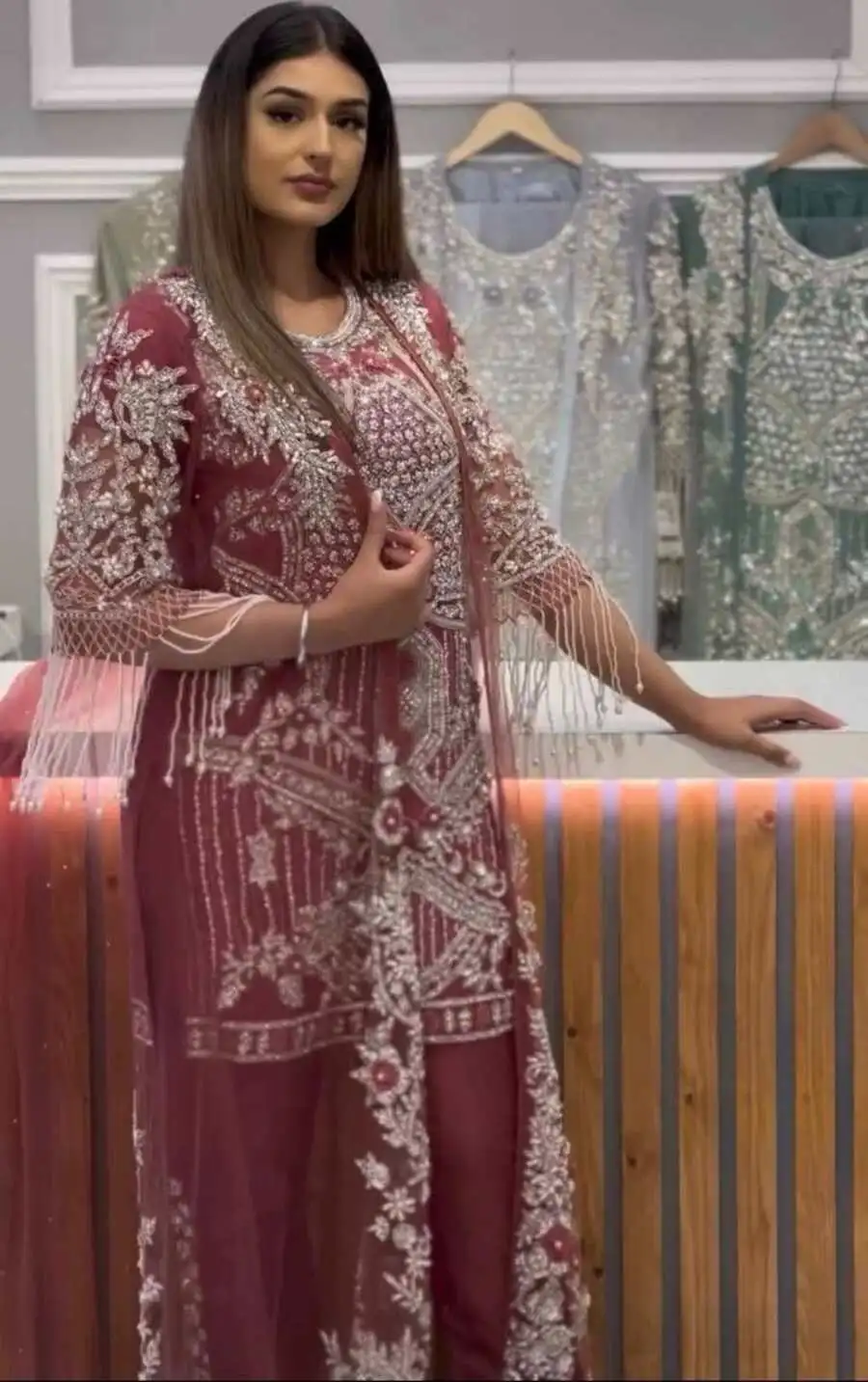 MODERN NET EMBROIDERY SEQUENCE WORK TOP BOTTOM WITH KOTI RED