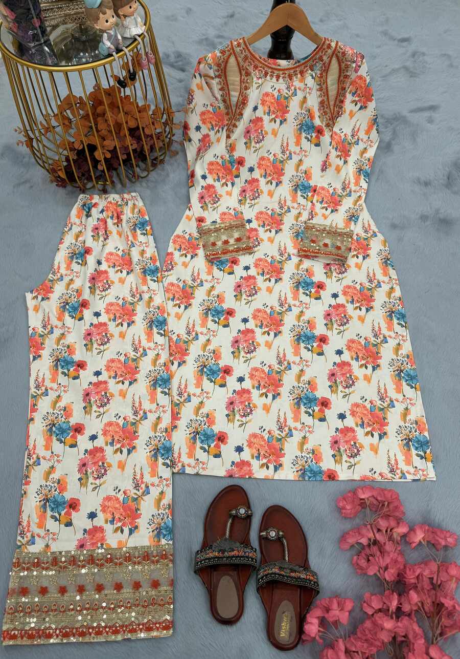 WORK : DIGITAL PRINT WITH EMBROIDERY 5 MM SEQUENCE WORK WITH SLEEVES