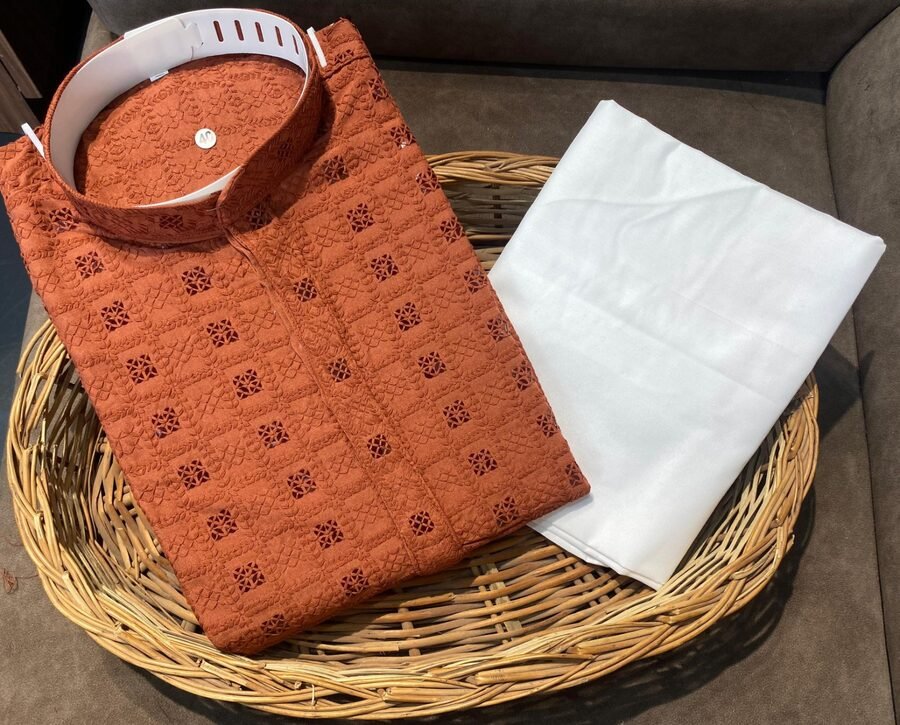 MODERN RAYON EMBROIDERY WORK MEN’S KURTA PAYJAMA COFFEE