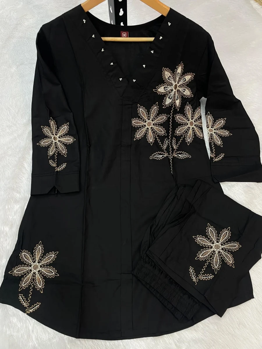 MODERN RAYON MULTI EMBROIDERY THREAD WORK CO-ORD SET BLACK