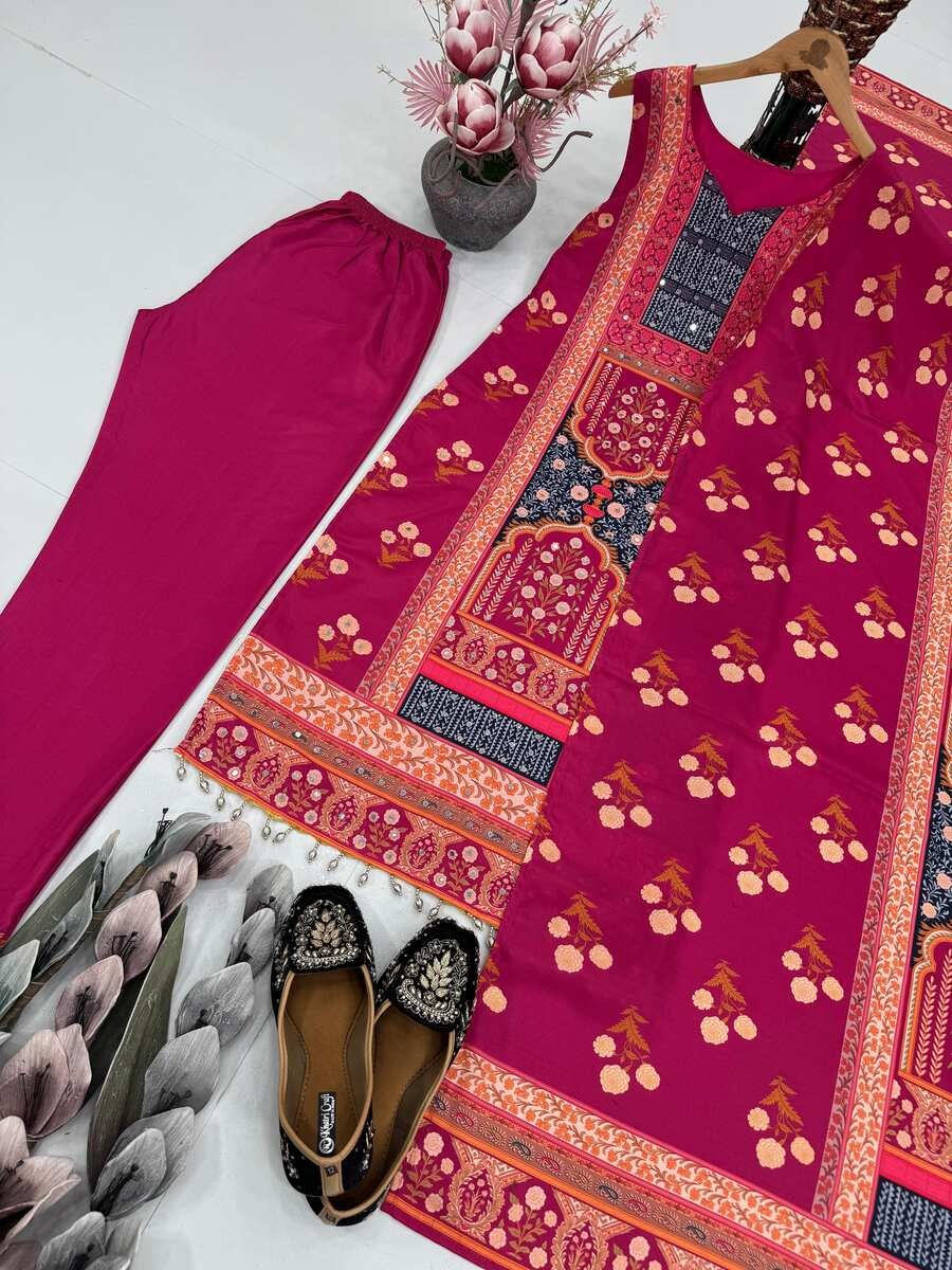 WORK : FANCY DIGITAL PRINT WITH REAL MIRROR HAND WORK AND FANCY LACE