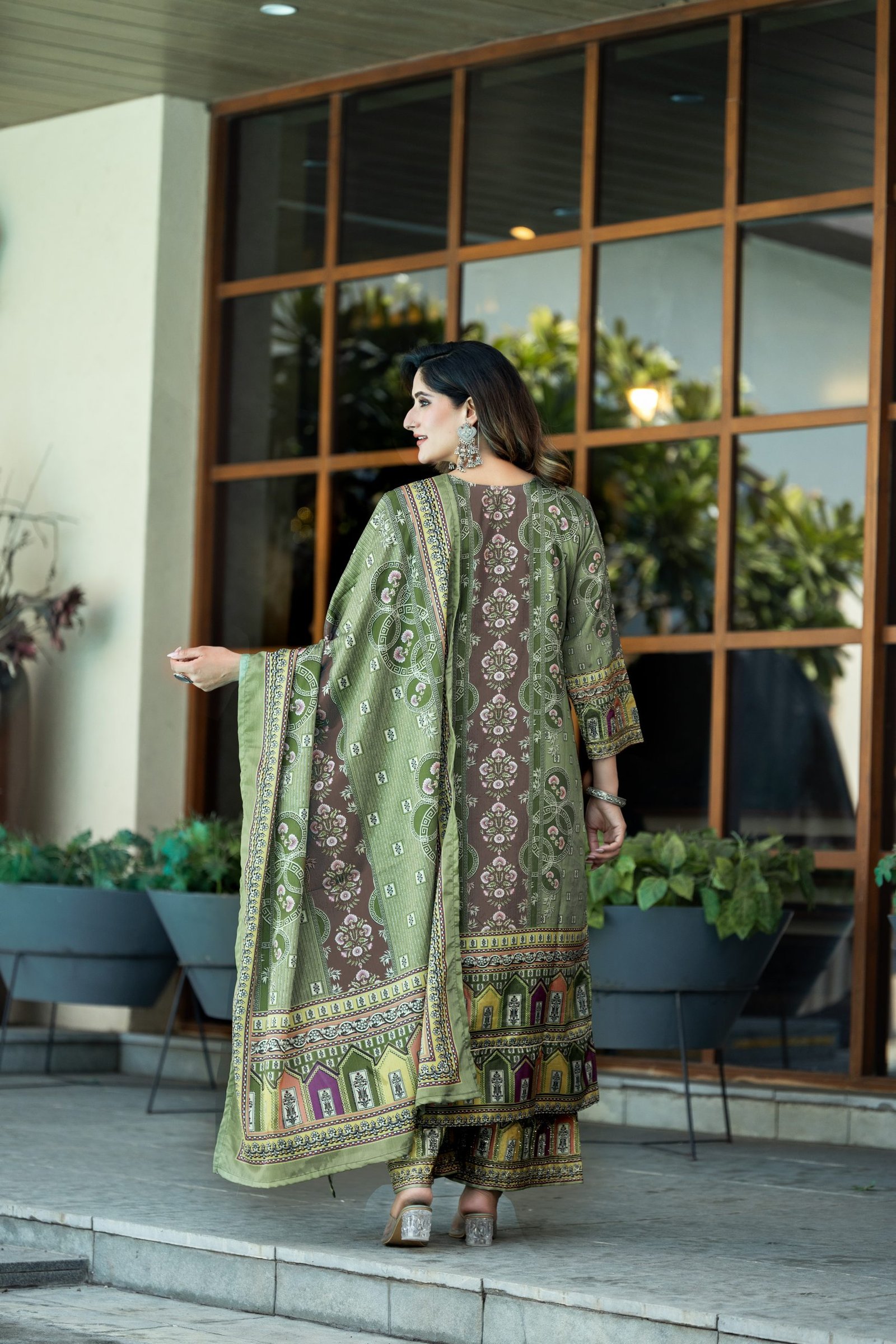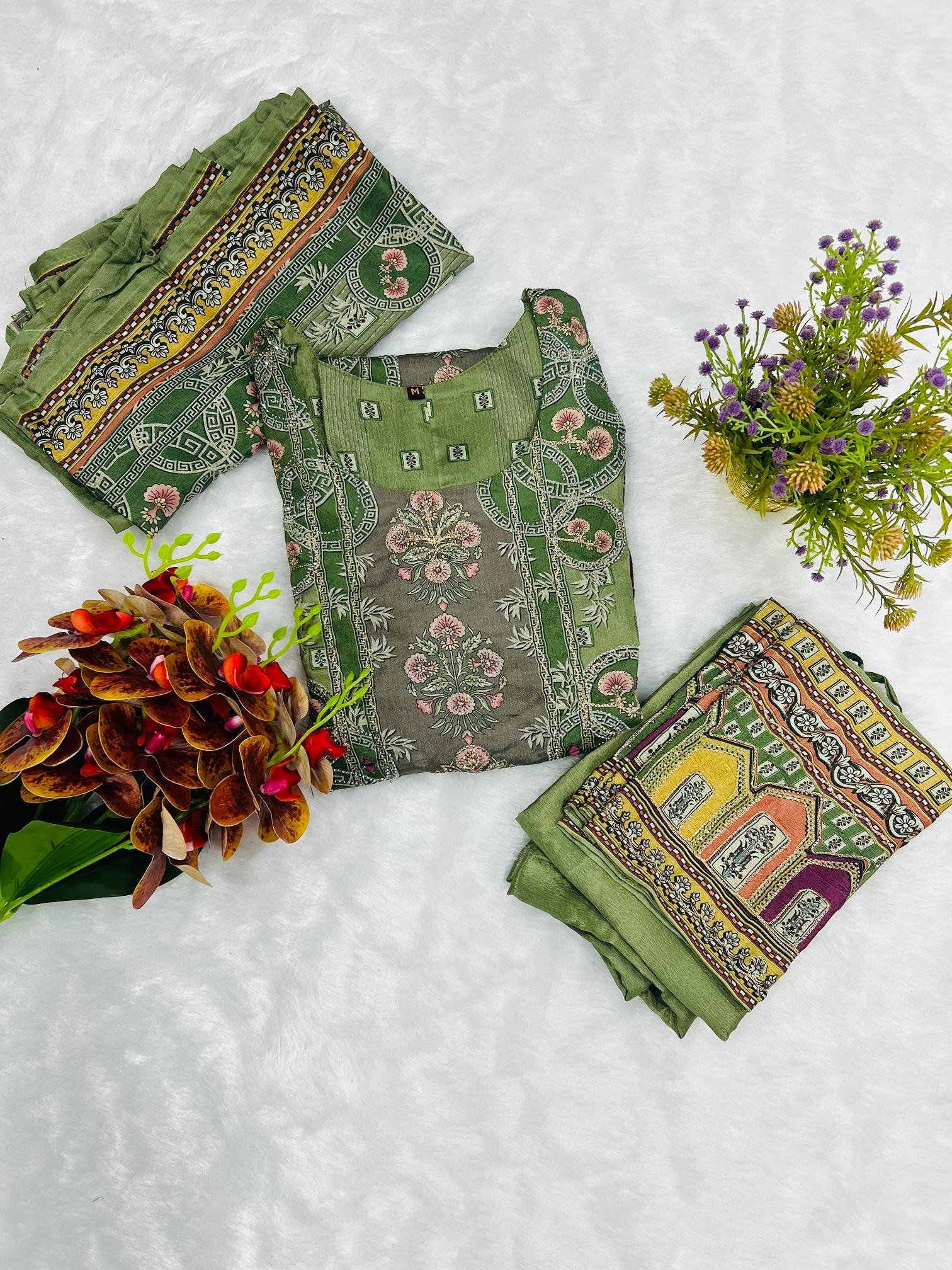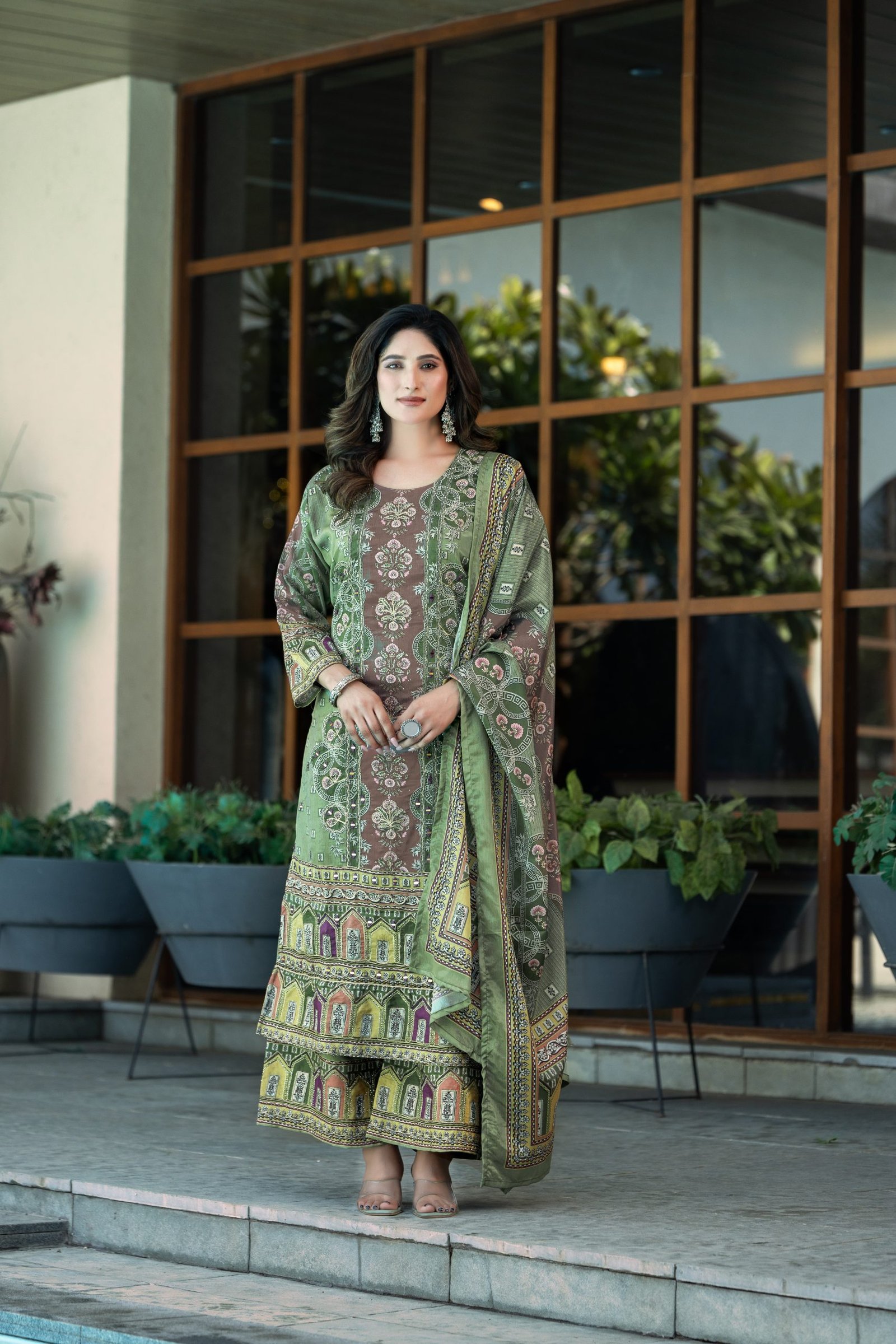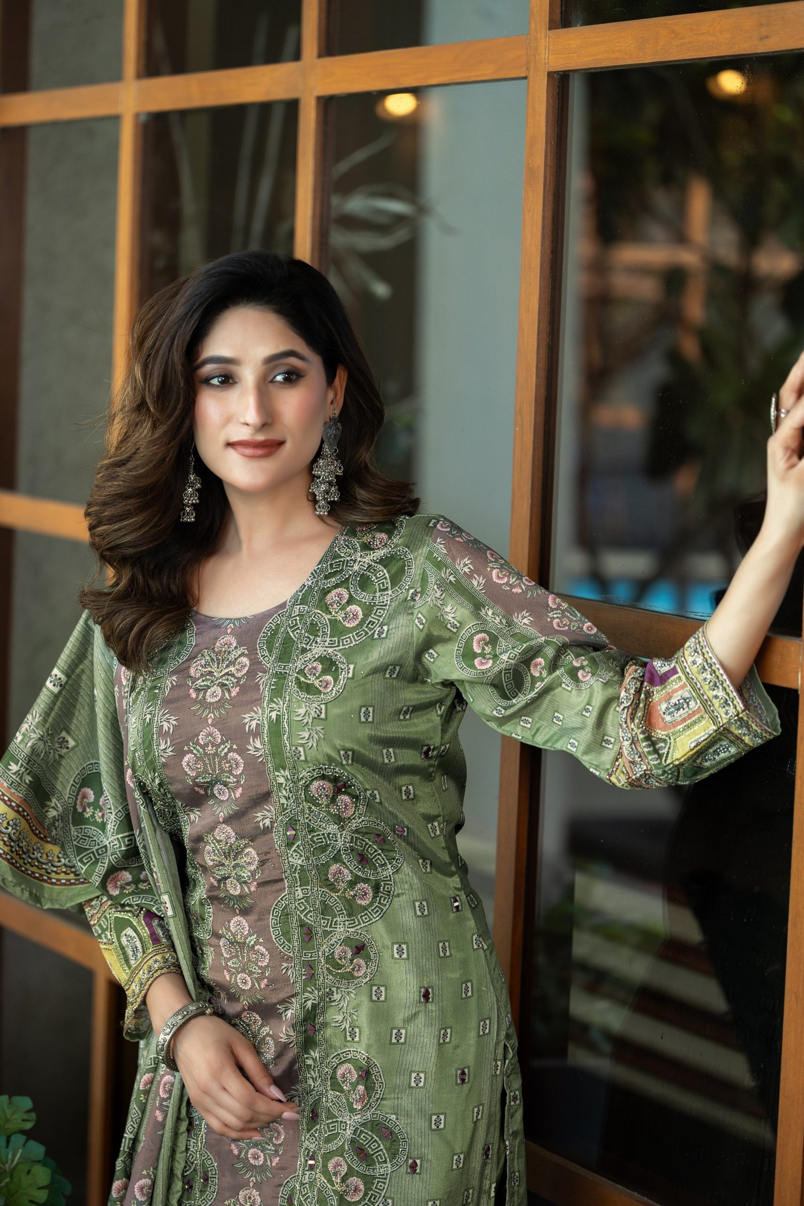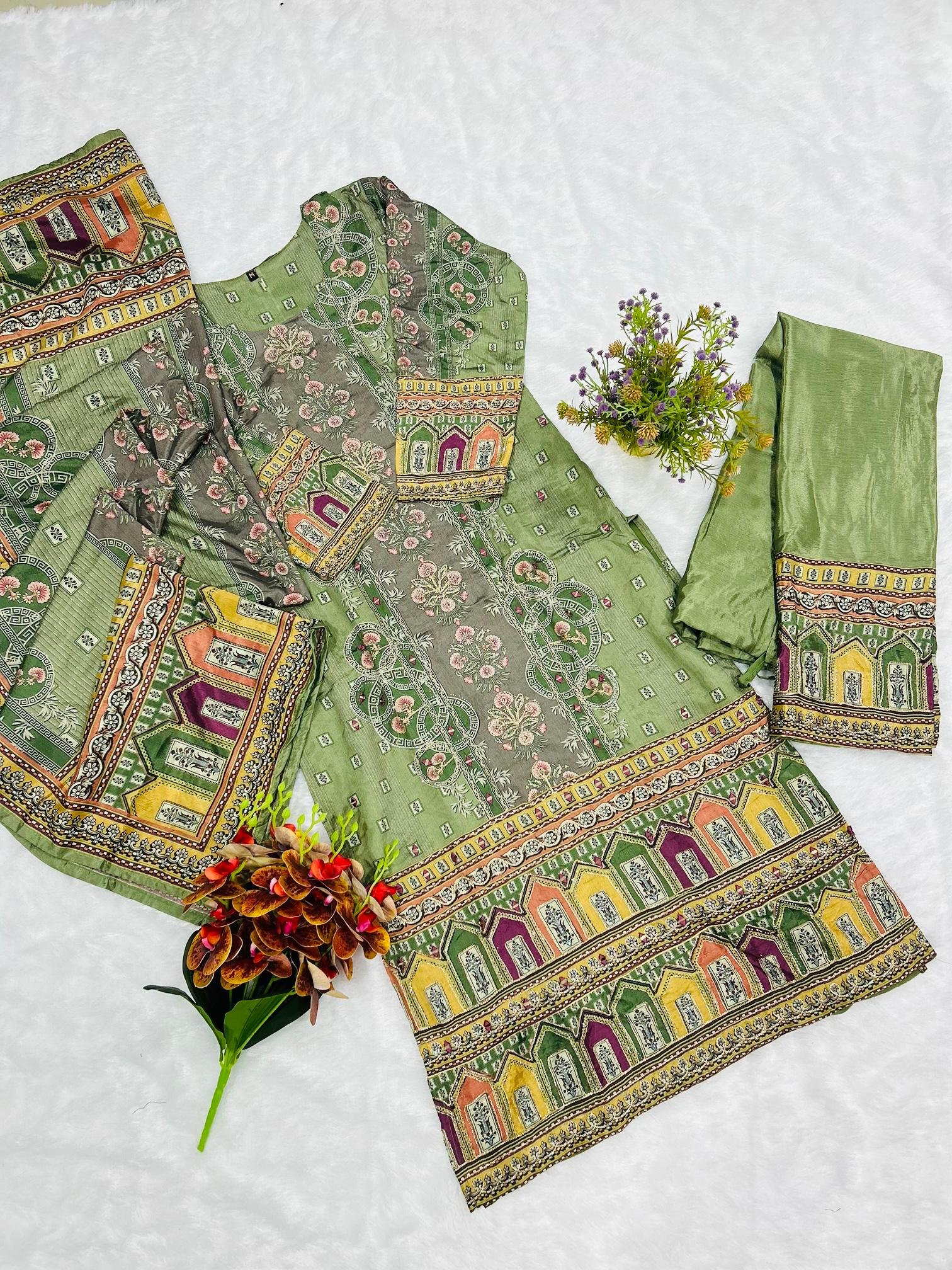 MODERN SOFT CHINON DIGITAL PRINT AND HANDWORK TOP BOTTOM WITH DUPATTA GREEN