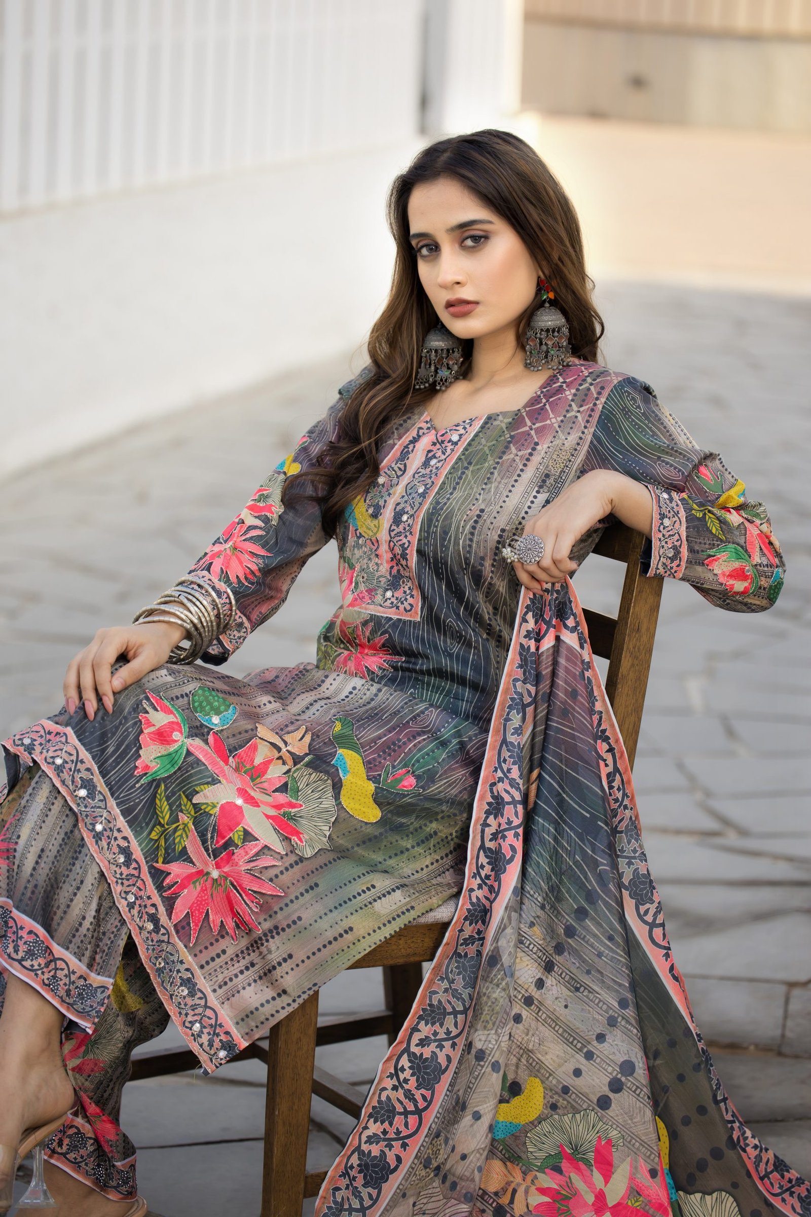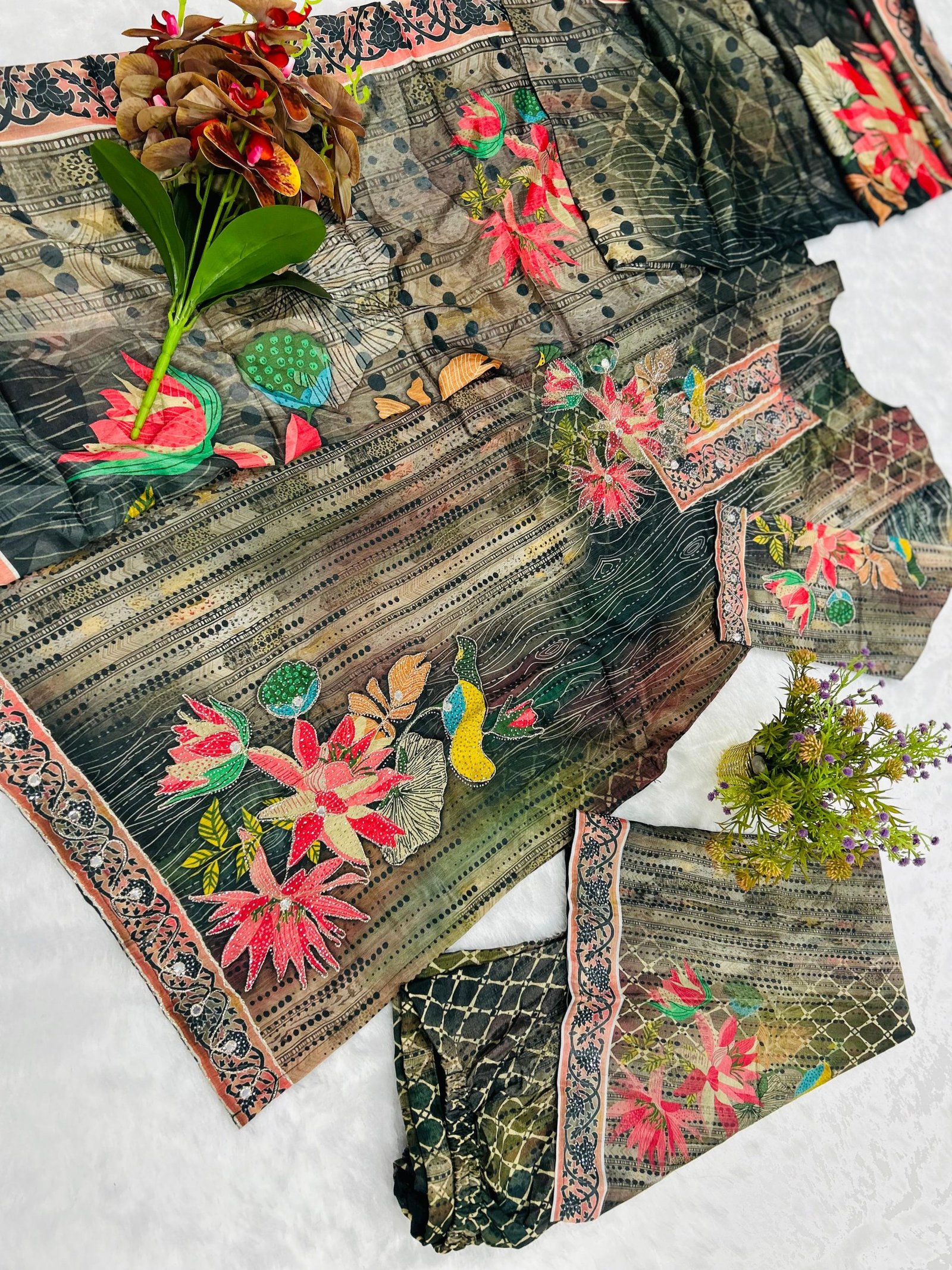 MODERN SOFT CHINON DIGITAL PRINT AND HANDWORK TOP BOTTOM WITH DUPATTA MULTI
