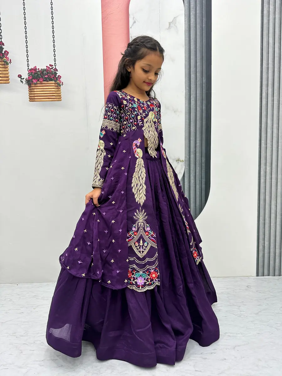 MODERN VICHITRA THREAD AND SEQUENCE WORK LID’S TOP LEHENGA PURPLE