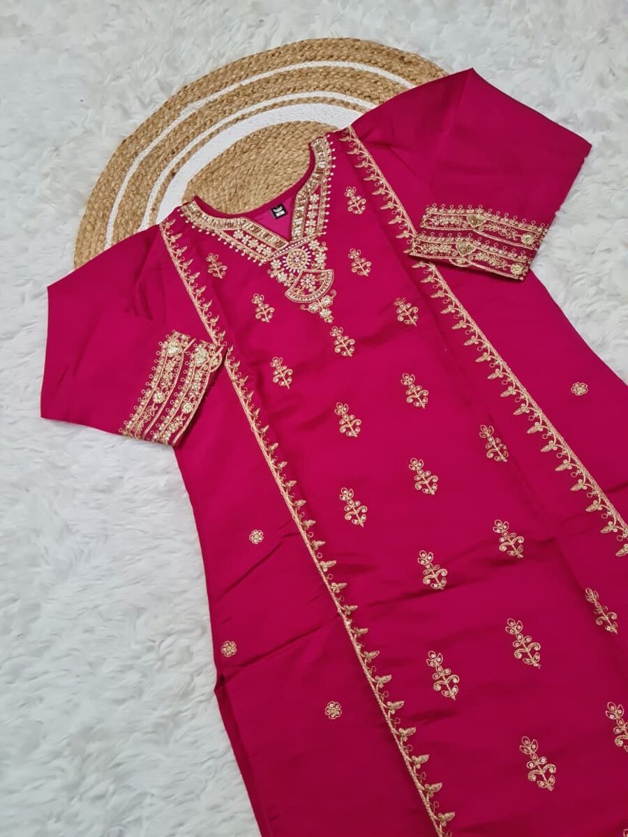MODERN VISCOSE CHANDERI SEQUENCE CODING EMBROIDERY WORK TOP BOTTOM WITH DUPATTA PINK